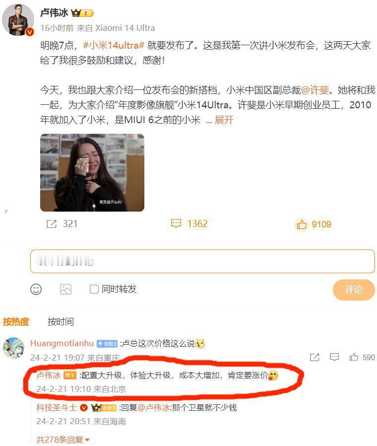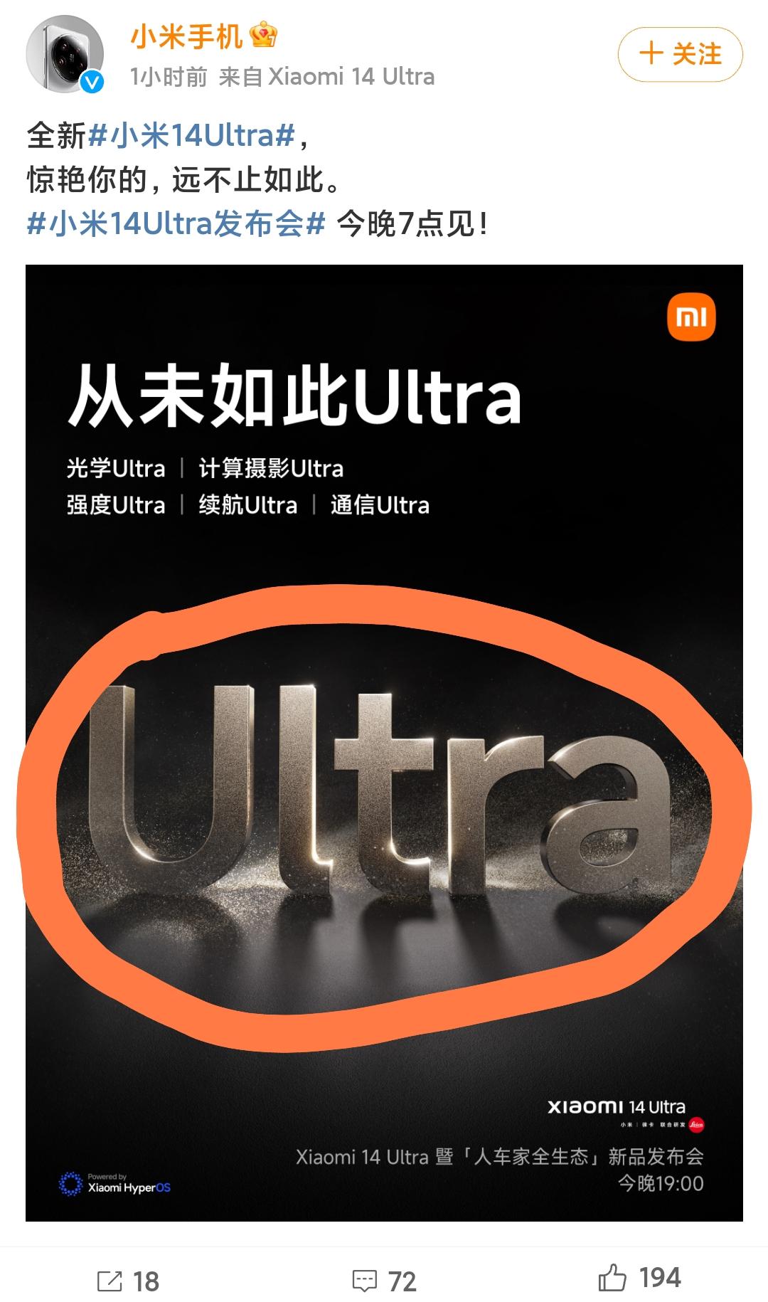 我敢肯定凭借这一点,信息量都要爆炸 xiaomi14Ultra的发布会马上就要开了 小米官方又放出来两个王炸, 1、小米14Ultra电池容量升级到了6800mAh 谁能想到这次xiaomi14Ultra的摄影套装,升级的并不仅仅是type-C接口直连,而且直接加入了一块电池,这不就相当于是带有充电宝功能的摄影套装,这回发布会要再说妥妥用一天,我也不会反驳了。因为手柄的好处在于拍照,拿起来手机能直接拍摄。现在加入电池,还有type-c接口,直接充电就完事了。 2、虽然说机身材料除了科技纳米皮之外,还有其他没有公布。但是从官方海报中,其实能看出来,金色Ultra字体颜色明显和原来是不一样的。直接暴露了一切,“钛”金属中框是跑不了。反正期待就完事了。 怎么说呢!其实本质上来讲,xiaomi14Ultra,这回是下了血本。以前Ultra如果说拍照神器,那么14Ultra那就是全能高手。就拿拍照来说,LYT900的镜头,加上小米AI大模型带来的计算摄影能力,解析力都能看得到。而且双长焦75mm和120mm焦段,加上这次的拍照套装,代替相机已经成为了现实。 此外再来说续航,高端手机的噩梦就是续航,这是痛点。但是小米算是开创了先河,加入了779电池密度的电池,硅碳负极材料,金沙江技术,电池容量来到了5300mAh。骁龙8Gen3发热也不大,续航必然不会差。 再加上外屏的龙晶玻璃,机身的龙铠架构。 包括双向卫星通信,澎湃T1信号增强芯片等细节。再加上钛金属和摄影套装,摸着良心说,在6k+档位打着灯笼都找不到替代吧!就看发布会上公布的价格,你觉得xiaomi14Ultra价格多少!