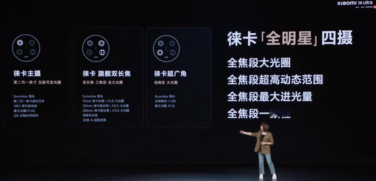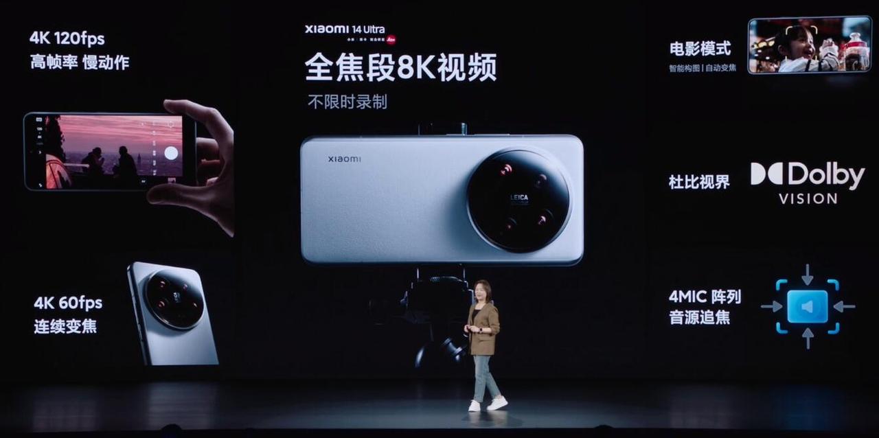 小米14Ultra这回是豁出去老命了 我觉得这并不是发布会 说白了 是哪哪都好,当然我说了不算,而是他的真实实力。 特别是拍照方面,比如AI大模型平台的加入,60TOPS的算力。全算法高画质连拍150张,而苹果也才只有65张照片。 另外全焦段这才是真实力,8K视频拍摄不限时,而且支持4K 120帧视频拍摄,这是目前手机端拍摄视频的最高规格,另外还有摄影套装,1500mAh内置,而且支持90W快充。以及1024级无级可变光圈