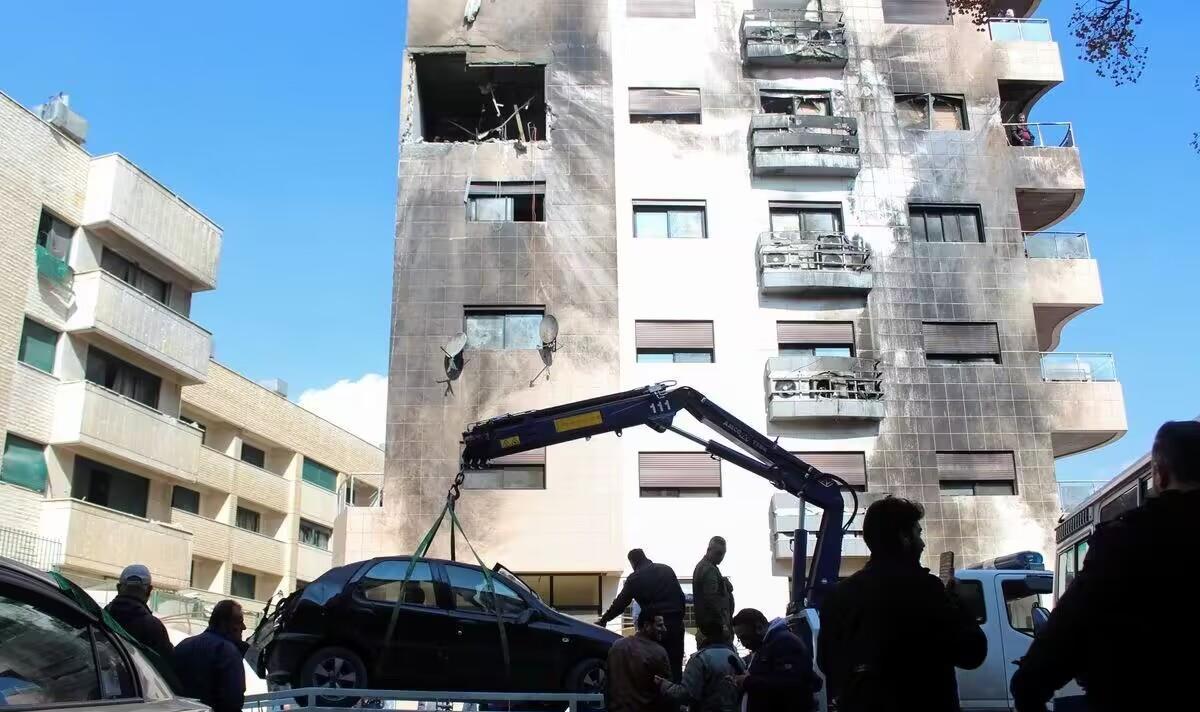 “你打你的,我打我的!”以色列空军在2024年2月21日,突然出动战斗机发射巡航导弹,远程轰炸了叙利亚首都大马士革的卡夫苏萨街区,轰炸一座住宅楼,初步消息显示,袭击造成三人死亡,其中包括当地的清洁工。对此叙利亚国家电视台称,以色列空袭叙利亚首都大马士革卡夫苏萨区的一栋住宅楼,造成多人死亡。叙利亚媒体发布的图片显示了,一座多层建筑烧焦的一面。叙利亚安全消息人士称,“以色列空军的导弹攻击,没有达到目的”。该街区拥有住宅楼、学校和伊朗文化中心,该地区在2023年2月,曾经遭到了以色列袭击,导致了伊朗军事专家丧生。按照叙利亚方面称,叙利亚当地目击者连续听到几声爆炸声,爆炸吓坏了附近一所学校的孩子们,救护车赶到了该地区。对于袭击目标是否是伊朗革命卫队在叙利亚指挥官,军事顾问,以色列国防军没有回应。现在来看,叙利亚-伊朗联军,啥时候西征收复戈兰高地解解恨!同时,在叙利亚东北部哈塞克省卡马尔丁镇,一架来源不明的自杀式无人机挂在了电线上。看外形,这应该是伊朗制造的自杀式无人机,由伊朗系武装,伊拉克什叶派武装发射,原本计划轰炸美军在叙利亚非法设立的军事基地,没有想到被电线挂住了,相当可惜没有轰炸美军基地成功。