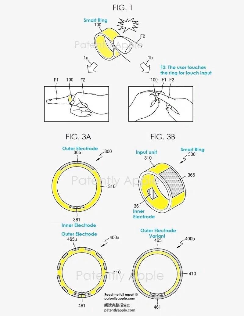 苹果智能指环,设计图被曝光? 据透露,这款指环可以和苹果生态终端互联,具备健康生物识别功能,睡眠和运动监测等,有些功能也会配合手势使用。以后的苹果三件套,手表、眼镜,戒指,一个都不能少。