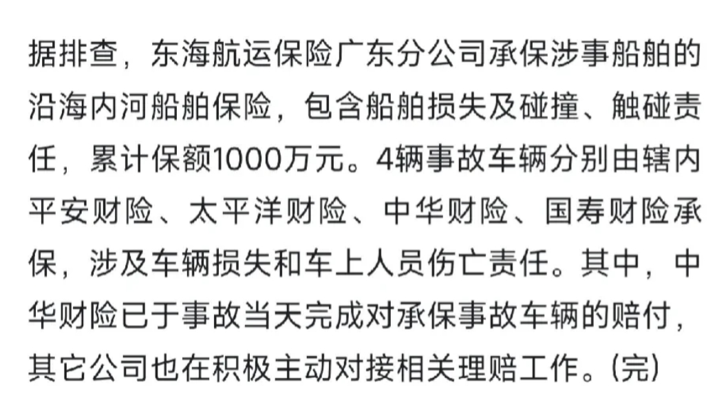 在此希望另外三家保险公司也要尽快完成赔付,体谅涉事家庭的难处,能多赔一点就多赔一点。