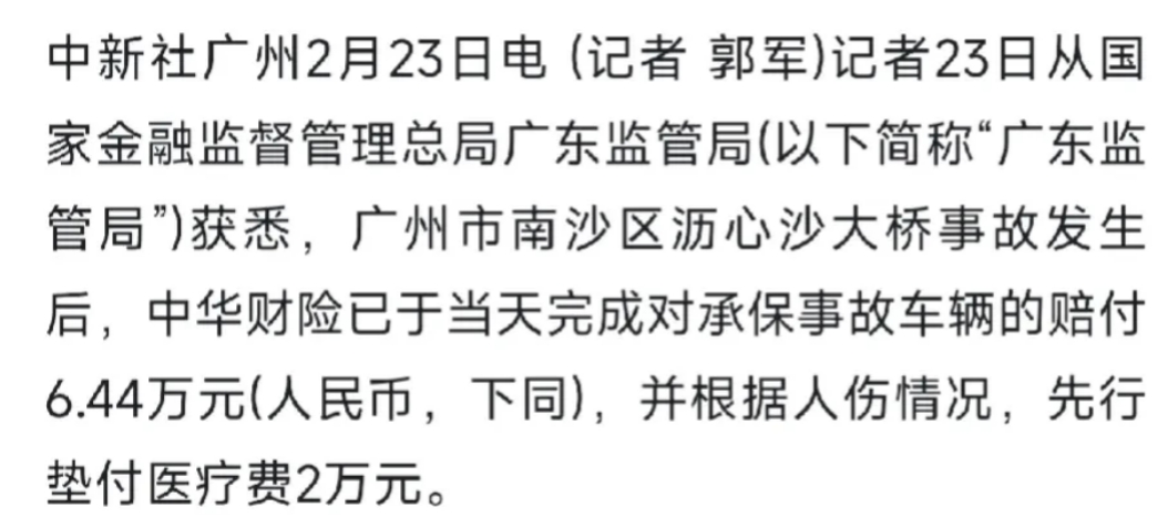 获赔1000万!货船撞断沥心沙大桥重大进展:货船撞断沥心沙大桥最新进展,保险公司已经完成对事故车辆的赔付,共计6.44.万元人民币,其中先行垫付了2万元。
