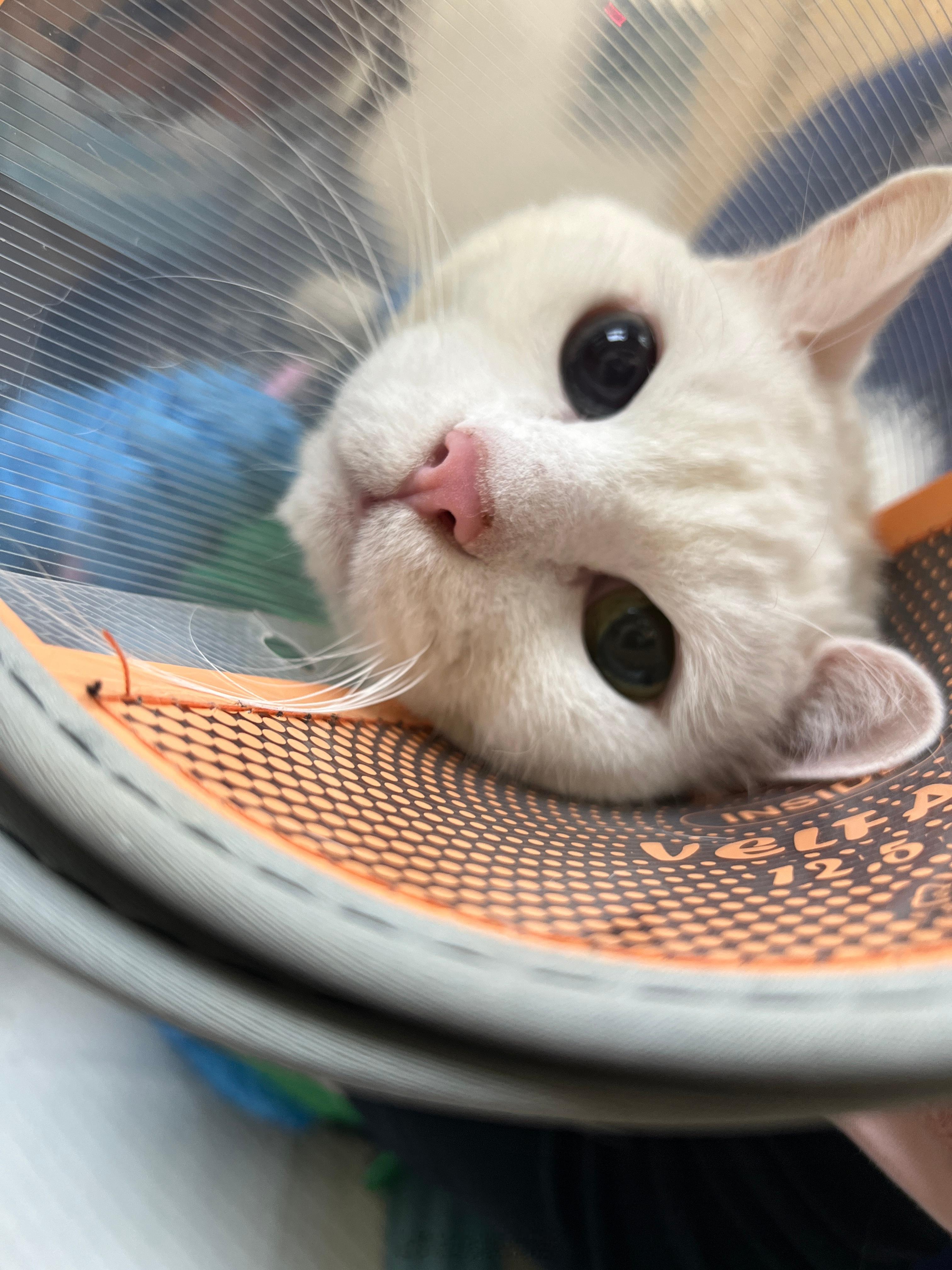 跟動物醫院聯繫後,馬上就帶著老寶出門,並先跟醫生提示吉吉是隻應激反應較大的老貓,害怕出門,曾經去過的醫院、碰到過醫生、連吉媽我抱著都會六親不認型⋯⋯所以,檢查前可能會先需要鎮定!