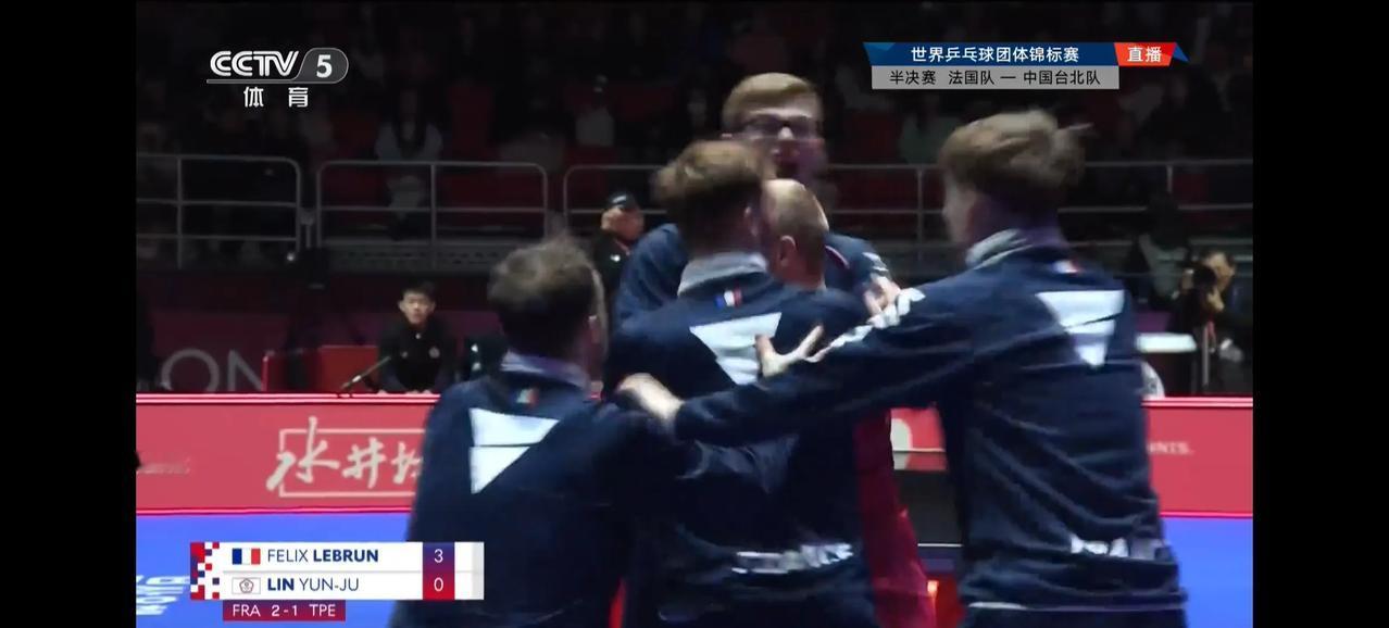 法国队击败中国台北队晋级世乒赛决赛!年仅17岁的菲利克斯.勒布伦一人独得两分,其中在第四盘3比0击败林昀儒。决赛将展开中法大战,上一次世乒赛法国队晋级男团决赛还是遥远的1997年。法国乒乓球也开始崛起了,看来法国队才是中国乒乓球在巴黎奥运会的最大对手,届时法国将坐拥主场之利。