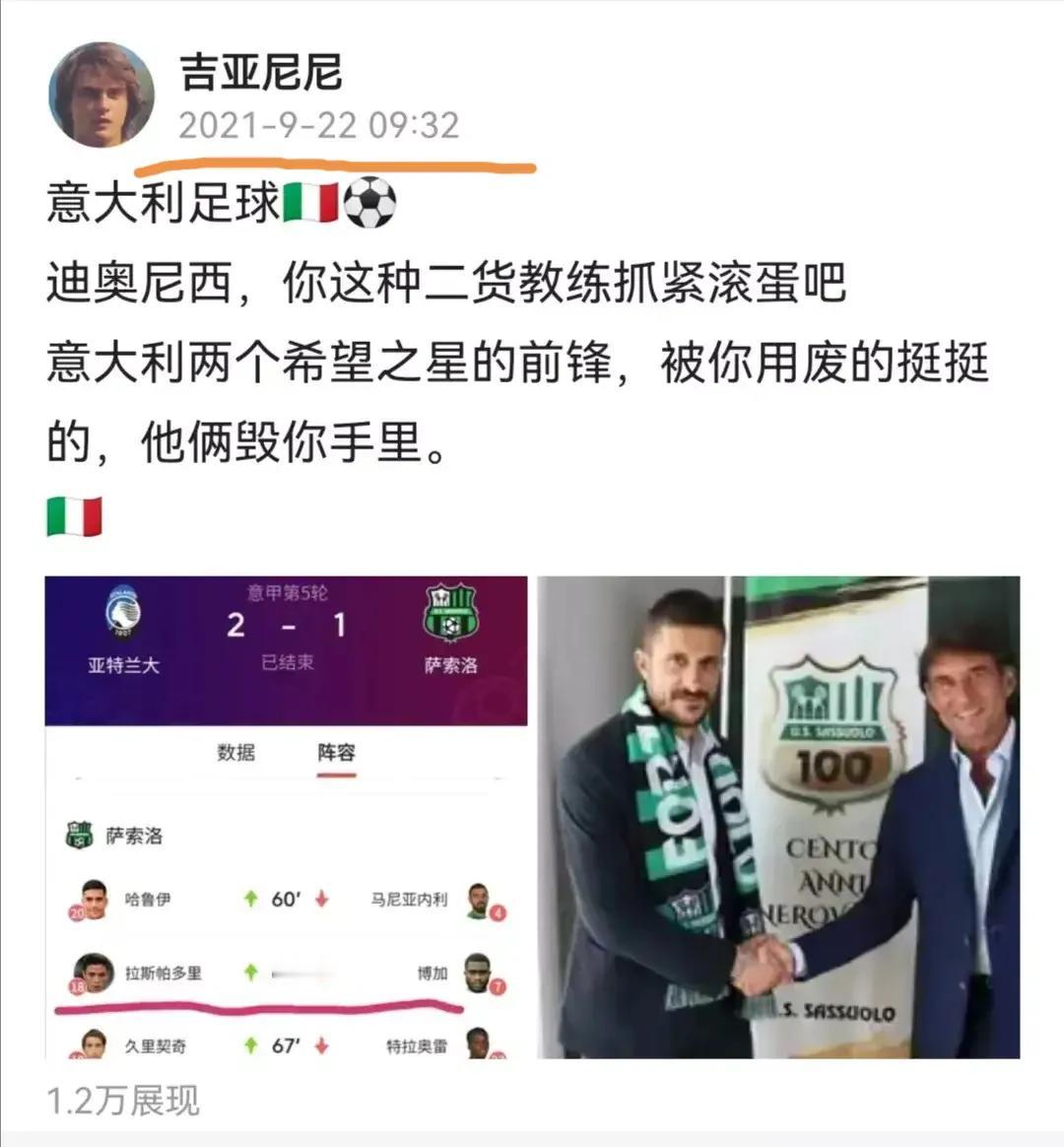 🇮🇹意大利足球🇮🇹 终于把萨索罗带进降级区 也终于下课了 我从三年前,二