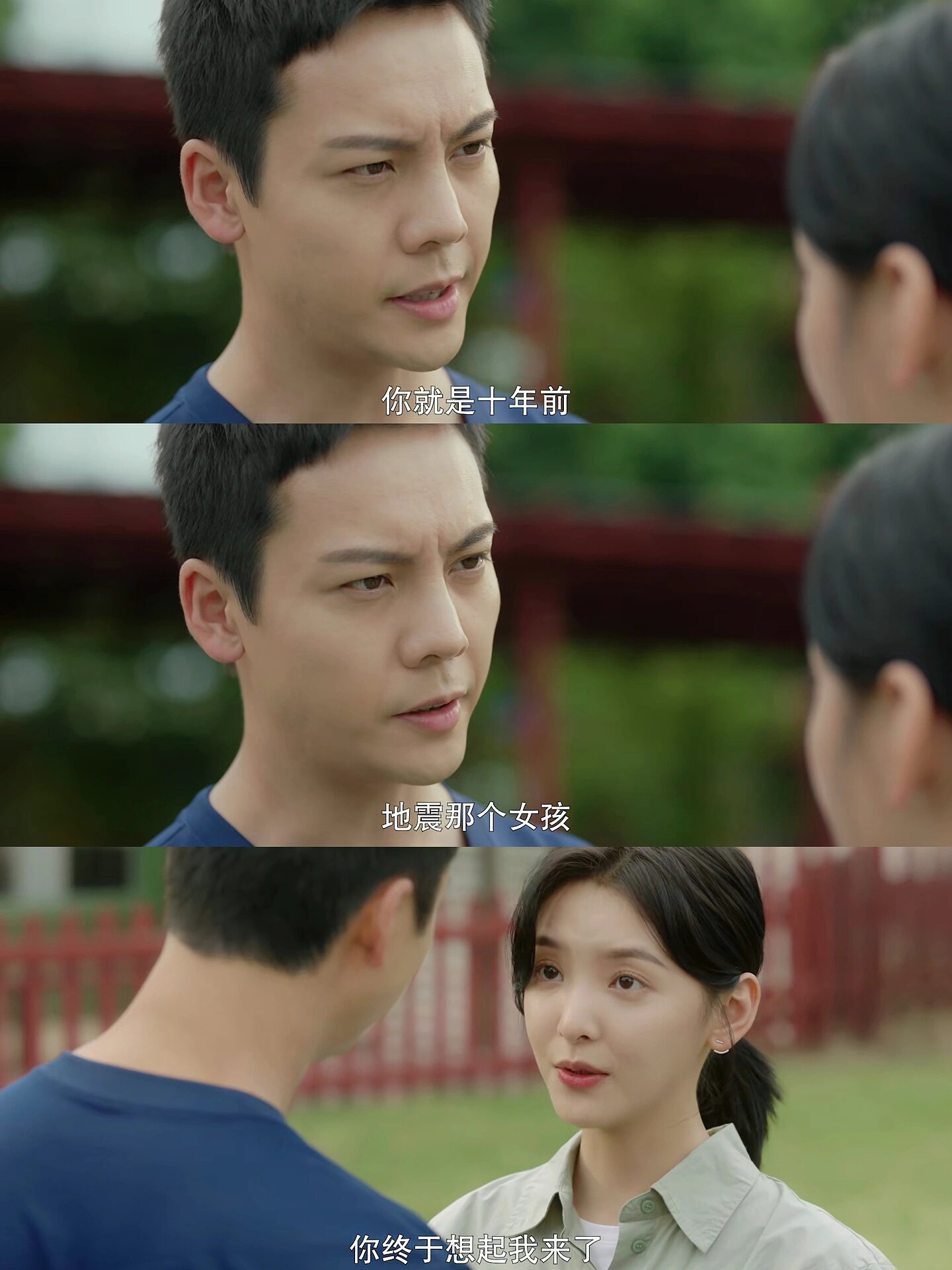 ✅讲述的是十年前的一场地震,章若楠饰演的徐来被困废墟,徐来沉浸在母亲遇难的悲痛之中,对未来也失去了希望,是陈伟霆饰演的靳时川鼓舞了她。当时年仅15岁的徐来对靳时川说:“靳大哥十年后我来找你,如果你没结婚,我嫁给你吧!”因为那个时候是逆着光,靳时川看不清徐来的面容,为了安抚徐来,不轻不淡回答:“好!”