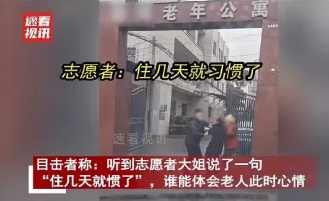 可儿子还是劝说老人,旁边的志愿者大姐也试图安慰老人,说刚来的老人都这样,待几天就习惯了!