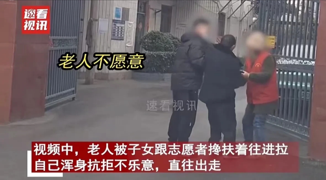 太心酸!重庆,老人被儿子送去养老院,但到了门口老人浑身抗拒挣扎,哀求儿子不要让自己待这里!可儿子说自己工作忙没时间照顾老人,待养老院对他来说是最好的!旁边的志愿者大姐也劝说待几天就习惯了,可老人的心情谁能理解?