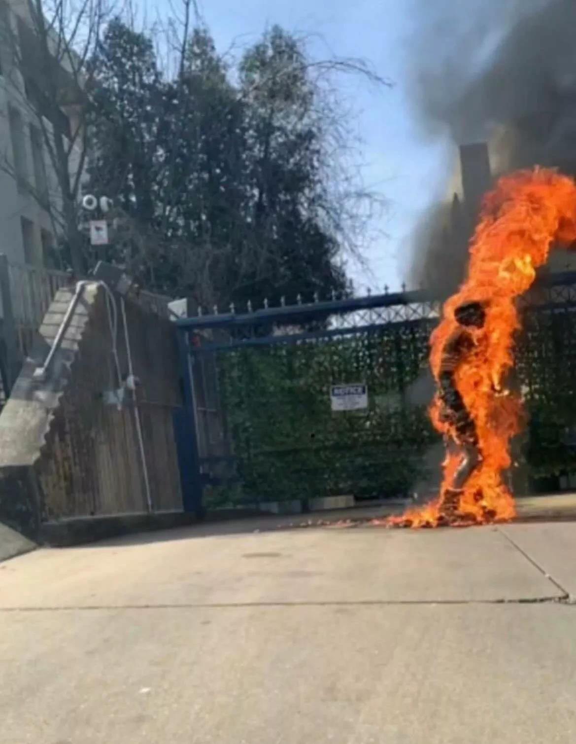 看了完整的无打码视频,他变成火人之后还坚持站立了四十多秒不倒下,直到最后一刻
