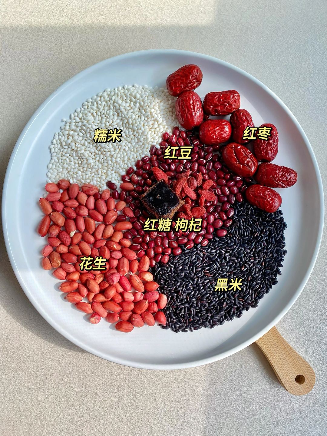 我妈妈经常给我做这个!因为我老是熬夜…😭 经常熬夜、手脚🧊冷的姐妹都给我去喝!! 每周坚持喝一碗!给我100张面膜也不换!! 早餐就馋这一口!香香甜甜的!糯叽叽~贼香浓! 📝食材:红豆、黑米、花生、糯米、枸杞、红枣、红糖 🥣做法:食材提前净泡2小时、洗净放入电饭锅加入适量清水,按煮粥模式,煮好后加入枸杞和红糖搅拌均匀 都是对女孩子友好的食材!!五谷杂粮!! 女孩子可以多多喝!贼好喝~营养又美味!