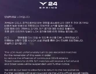 事情闹大了!因LCK比赛遭遇黑客攻击,LCK联盟官宣比赛将以录播形式进行,并表示誓要抓住元凶[捂脸][捂脸][捂脸] 最近因LCK比赛的过程中突然遭到了黑客的网络攻击,致使比赛被无限期延期,最终只能无奈地宣布: 从本周开始,LCK比赛只能以录播的方式进行了,直到彻底恢复服务器为止 目前LCK官方已就此事委托给韩国警方进行调查,但韩国警方表示目前很难抓住元凶,因为该黑客的攻击方式并非是直接的,而是利用了DDOS改变了服务器容量,想解决问题只能增加容量和带宽的方式,但短时间内并不现实 同时LCK官方表示,由于全球的服务器相互连接,因此很难自行运营脱离全球构建的本体服务器,所以这个问题十分棘手。但韩国警方也表示会势必追究到底,直到抓住元凶 攻击LCK联赛的服务器?不知黑客是出于什么目的[捂脸][捂脸][捂脸] #英雄联盟[超话]#