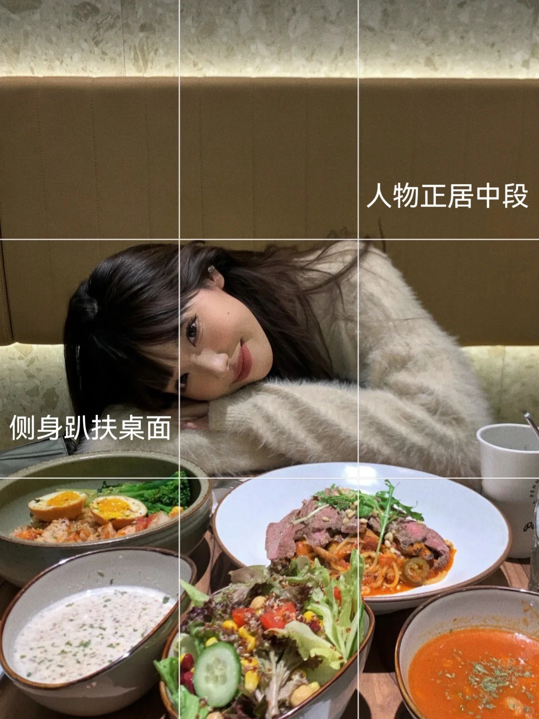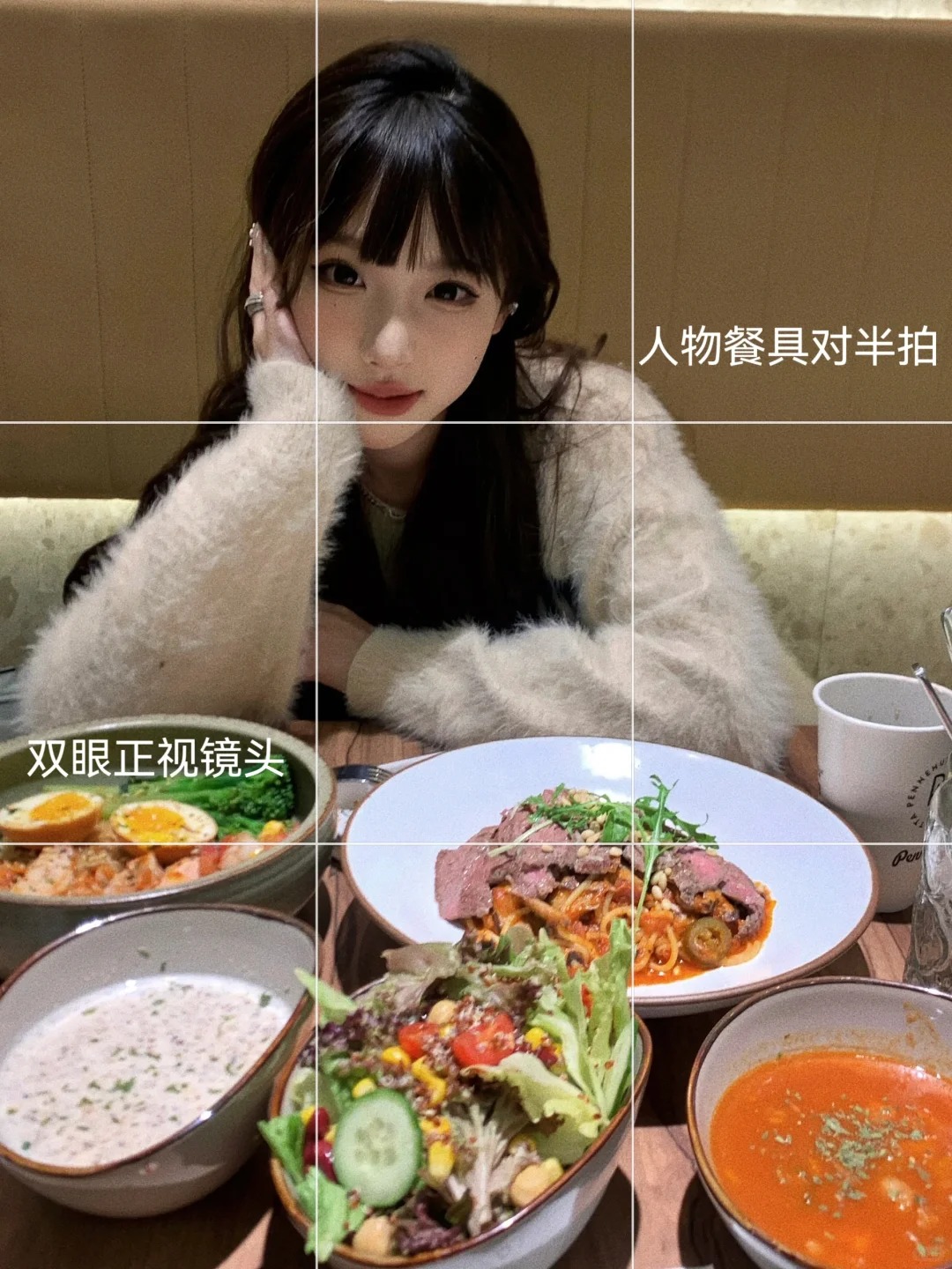 9️⃣个一学就会的吃饭万能拍照姿势📸 原相机📸尊嘟很适合这种氛围感餐厅 一定放大到2.0倍❗❗ 这样人像才会亮而且会有这种颗粒感 拍照时要动起来 多和食物互动 让你朋友给你抓拍💕