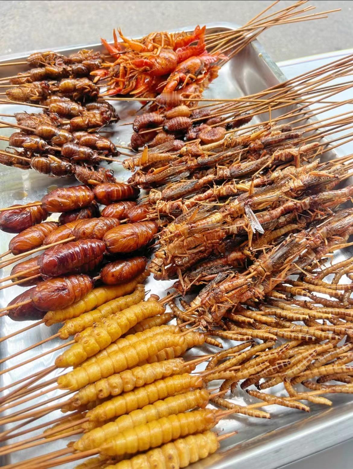 我的家乡离云南很近,从小都可以吃到不少的云南美食,融合了云贵口味的我,从小都喜欢把油炸油蚂、油炸大麦虫当虾条吃,嘎嘣脆,而且还有一股鸡肉香~再来点我们贵州的辣椒面,安逸得很~ 蚕蛹和蜂蛹烤出来脆脆又爆浆,比较适合小酌的时候吃两个,喜欢爆浆的朋友可以试试!! 不过俺也有目前还没敢挑战的———蝎子。 听说蝎子吃起来像螃蟹,俺有点心动,有没有吃过的老铁来给我安利一下的? 在惊蛰,快打开饿了么搜索【时令官】,看看有木有你的心动虫虫料理!