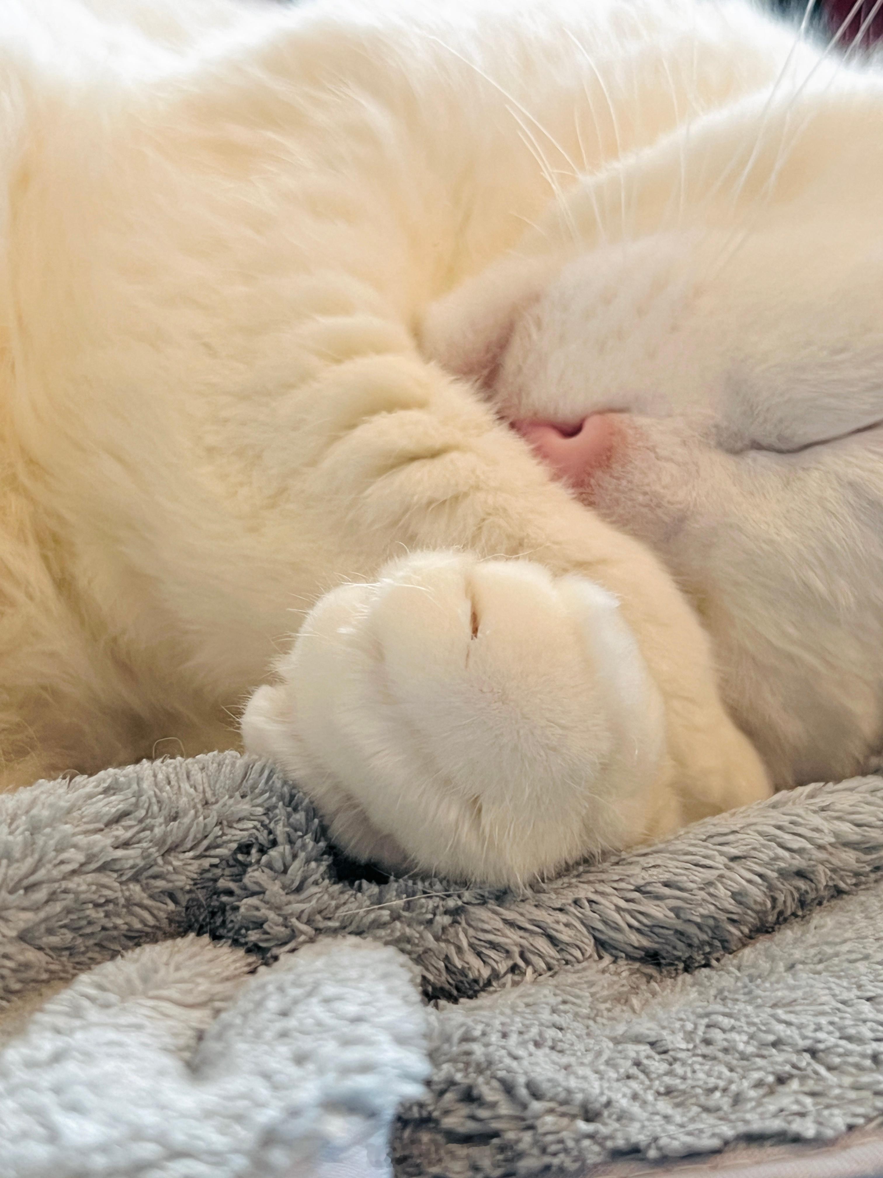 沙發上平放一顆抱枕+兩張毯毯+蝦味就可以讓老寶睡到翻過企~