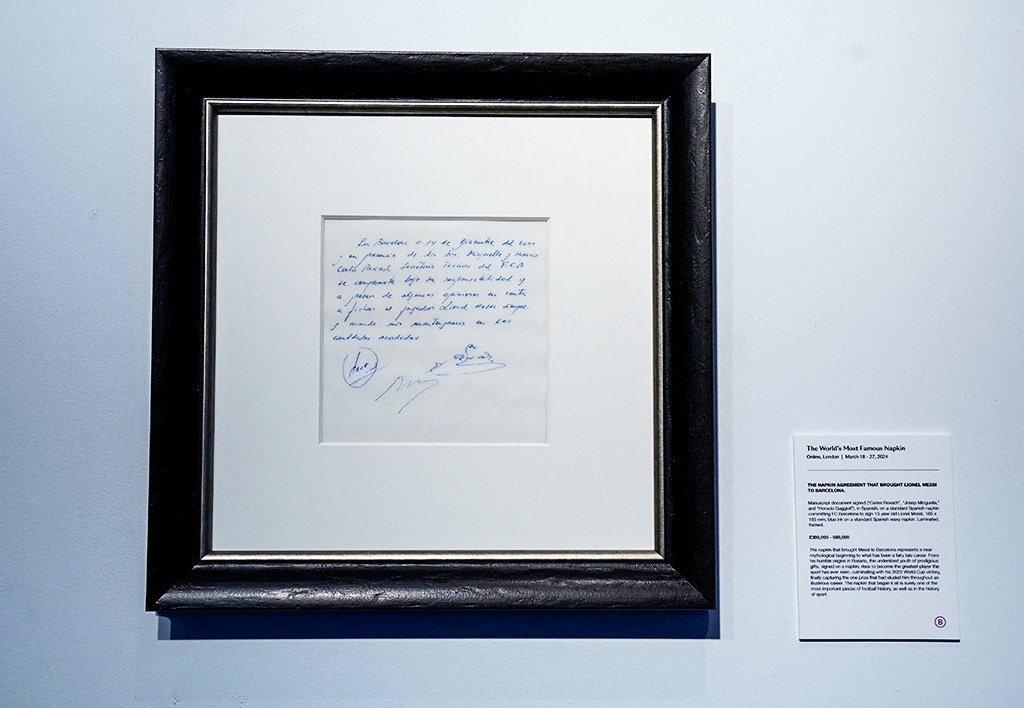 梅西与巴塞罗那签订第一份合同时所用的纸巾将于3月18日进行拍卖,27日结束,该纸巾目前在纽约。
