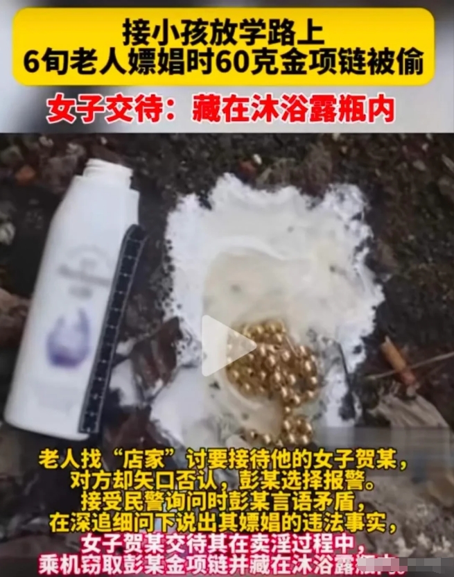 “太狗血!”江西,一60岁老汉接孙子放学,竟趁间隙找失足女交易,岂料,一番云雨后,失足女竟趁老汉身体疲累之际,偷走了他的金项链!老汉大怒,可他接下来的举动,却令人啼笑皆非! (来源:潇湘晨报)