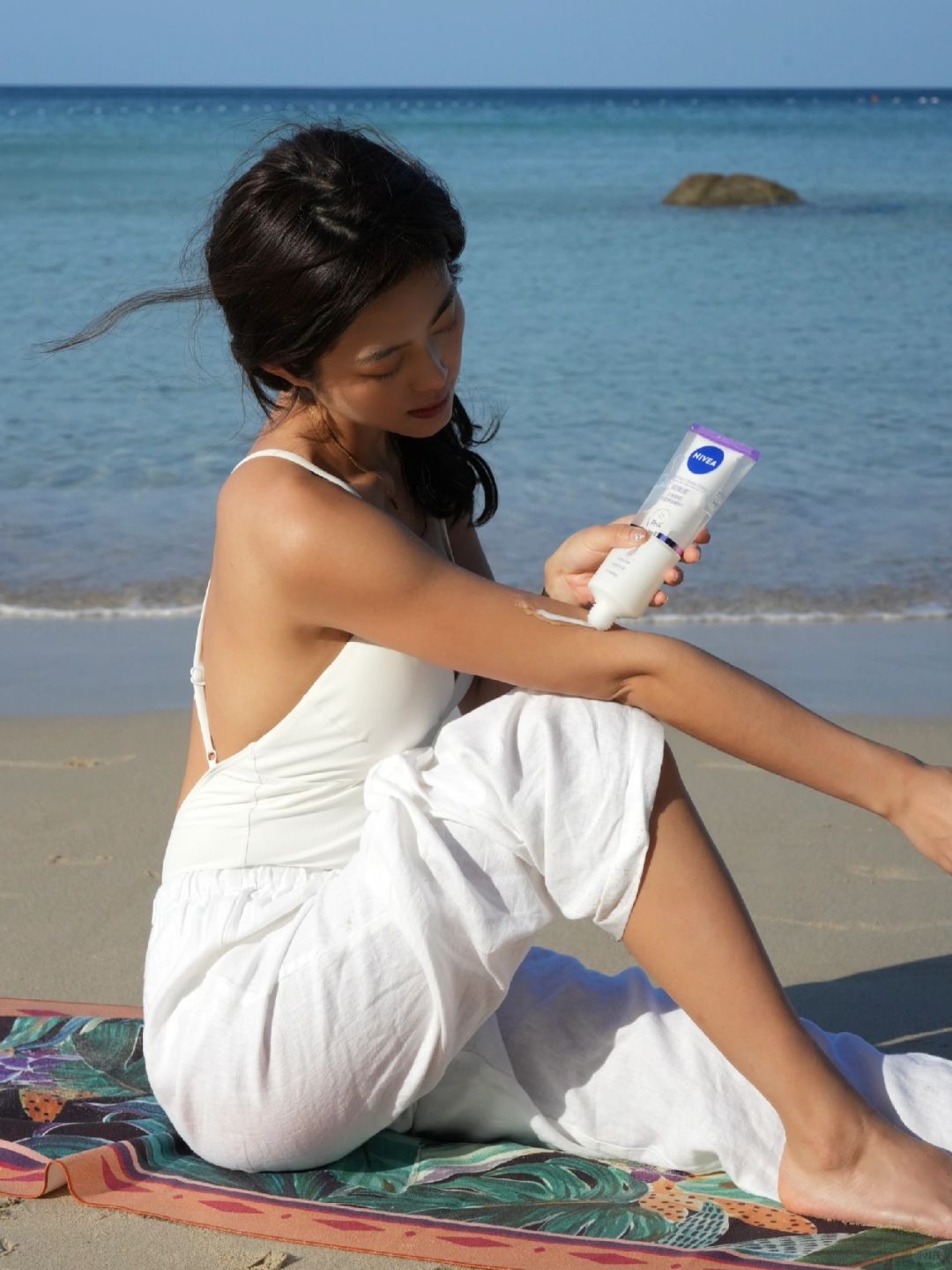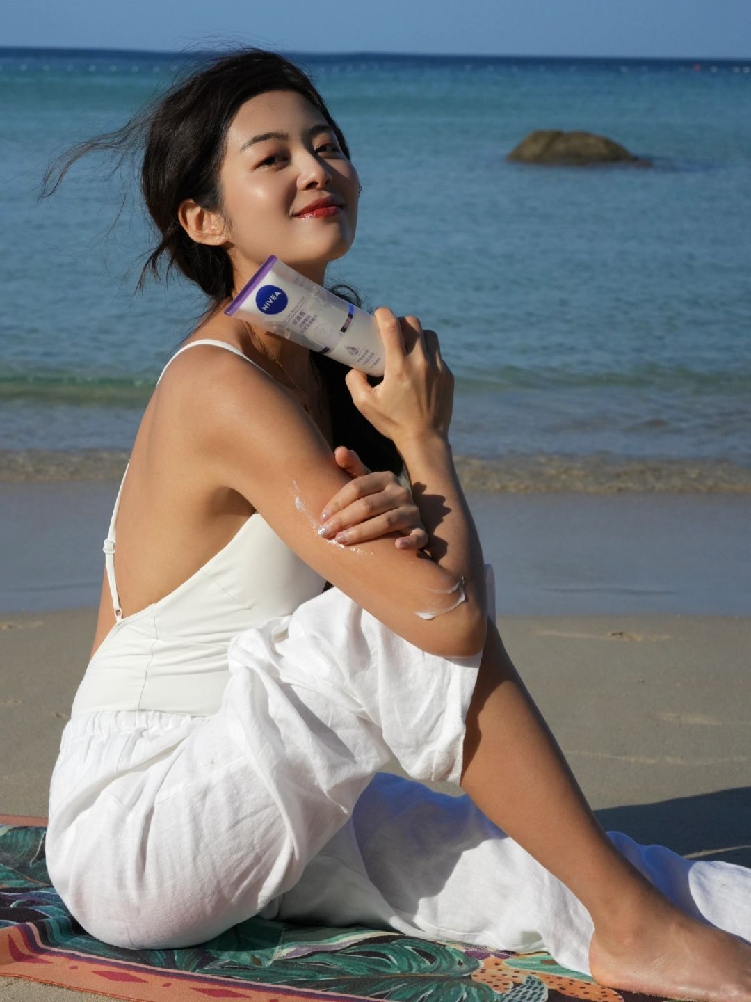 它外管含有的大小分子玻尿酸和B5,主打舒缓修复,在海边晒晒真的也不担心!