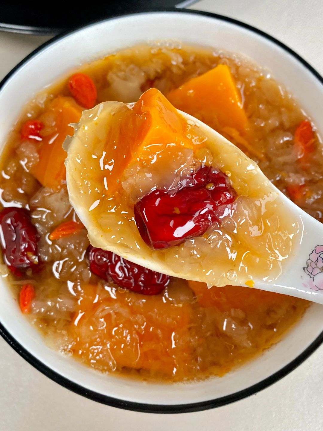 银耳顺滑润润哒~搭配甜甜的南瓜口感~