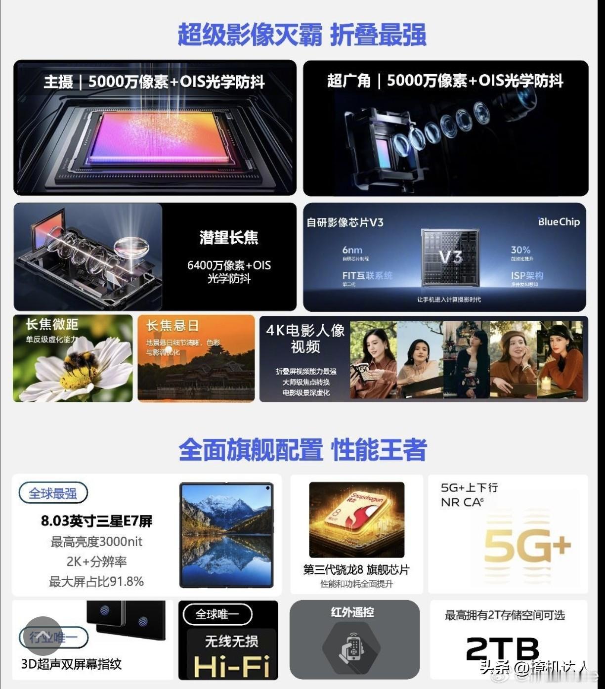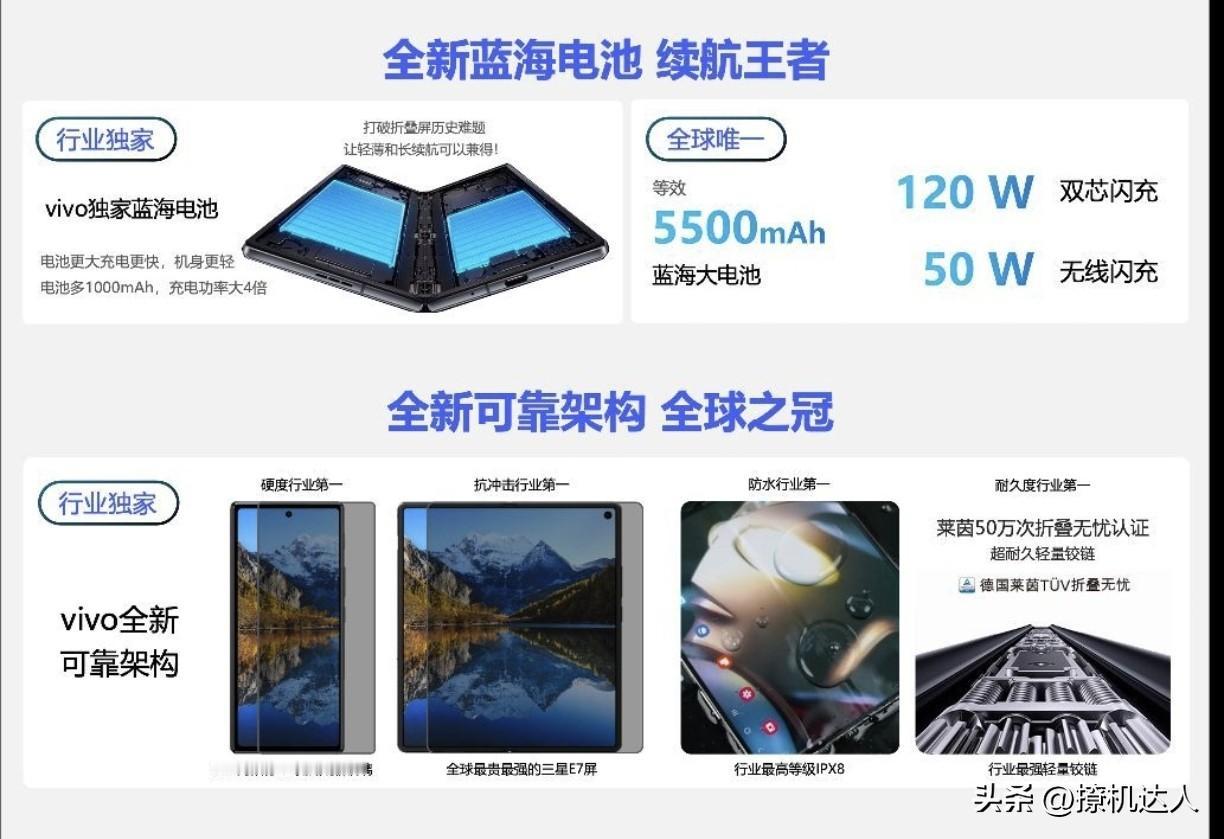 蓝厂大折叠vivo X Fold3系列这配置有亿点点强啊,比X5 Max还轻薄(4.5mm)?5500的电池,支持IPX8防水,Pro还支持OV64b的潜望长焦?而且支持长焦微距,双超声波指纹解锁……好家伙,这是折叠屏???