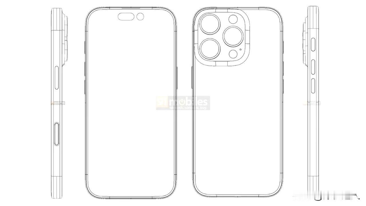 iPhone 16 Pro CAD渲染图,还是以不变应万变。整机最大变化是显示按
