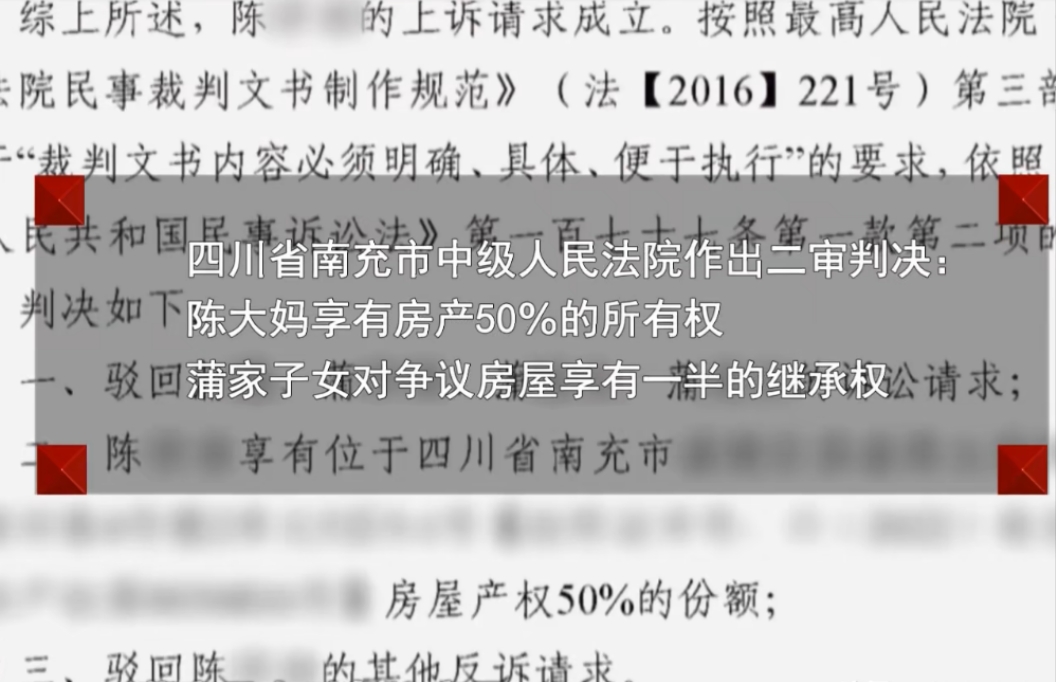 同年11月,一审判决:蒲家四个子女拥有房屋继承权。