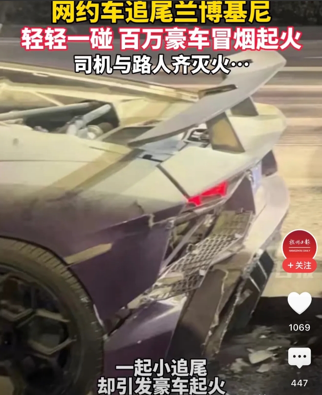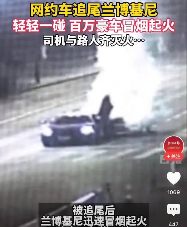 浙江杭州,一辆网约车在行驶的途中,突然撞上了前方的一辆兰博基尼跑车,事故发生后,跑车竟然冒起了白烟,随时有燃烧的风险,网约车司机见状,赶紧找来灭火器,和路人一起合力扑灭了火情。事发后,据知情人称,这部跑车价值上千万。