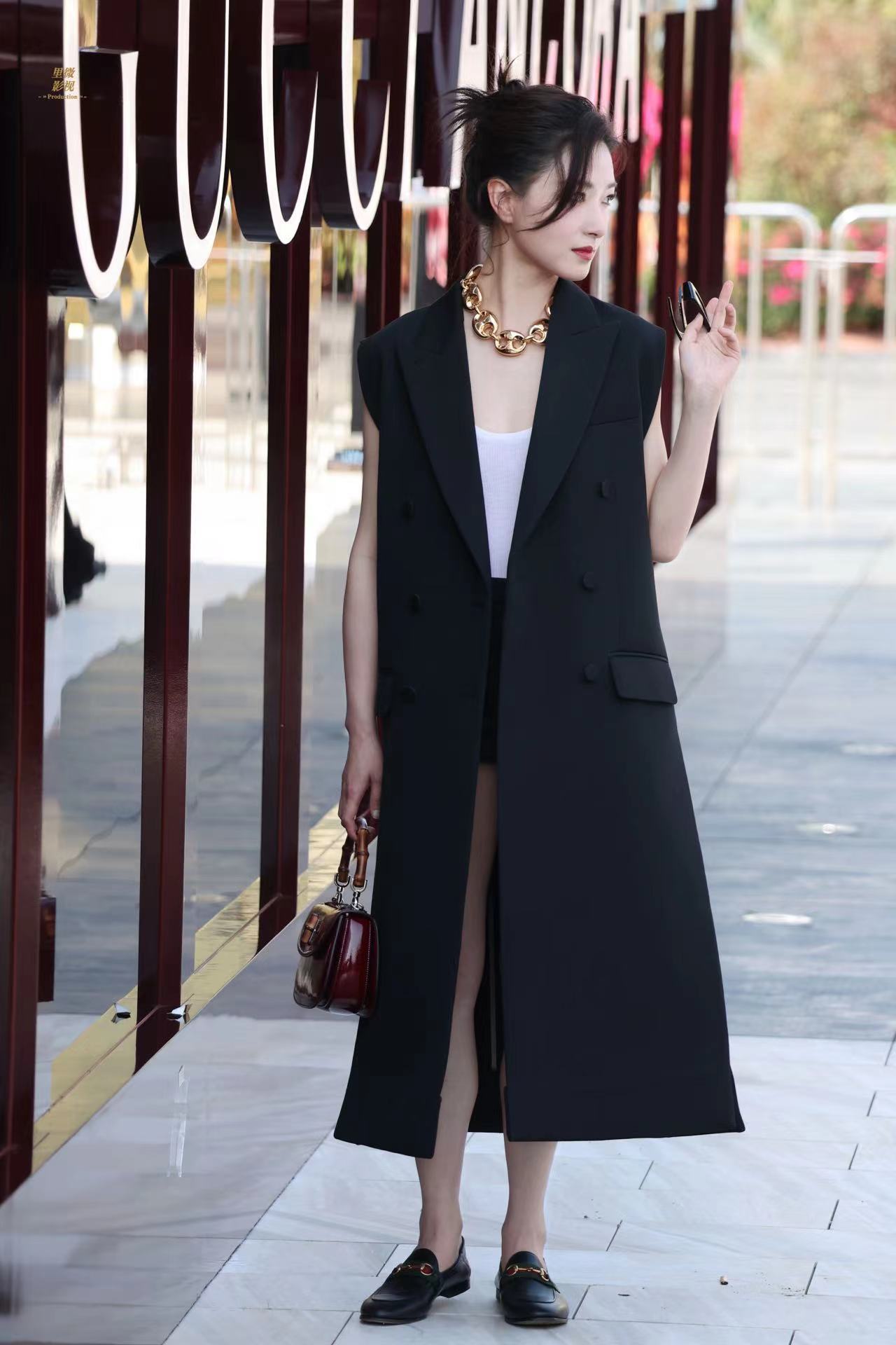 #万茜穿平底鞋的身材比例# 穿平底鞋,但比例好,今天的造型好酷哦