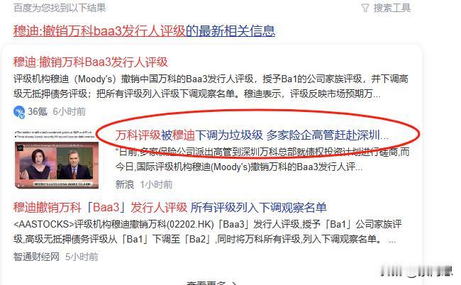 万科在打穆迪的脸了。 日前,多家保险公司派出高管到深圳万科总部就债权投资计划进行磋商, 而今日,国际评级机构穆迪(Moody's)撤销万科的Baa3发行人评级, 取而代之的是Ba1企业家族评级(垃圾级)。 穆迪的消息发出来了。万科的股价就开始大涨,好像就是为了对穆迪的脸上扇大嘴巴子。 老索以为。恒大,碧桂园这种民企出问题,还可以理解,但是万科是国企背景,应该不会任由其发生风险,管理层应该会干预。。。穆迪这种评价是在不干预的情况预计走势。如果万科都不干预。整个房地产公司还有存活的吗? 今天整个内房股都在上涨,好你在向外市场表达着什么。 详细内容参考核心文章吧 (关注老索)