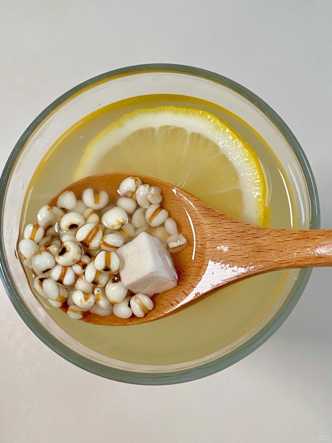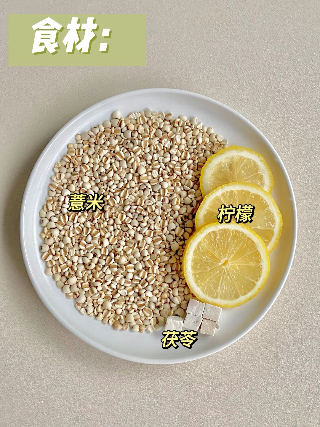 都说湿气不走又肥又丑😂 每个人都有湿气😭尤其是爱吃冰、经常吹空调… 薏米茯苓柠檬水!我每周都会坚持喝一次! 做法简单!感觉拿来分享给姐妹们~ 📝薏米、柠檬、茯苓 🥣做法:薏米和茯苓放入锅中兑水煮开20分钟左右,放温后再加入柠檬片 ✨薏米记得先炒一下 建议姐妹们把奶茶都换成它!!