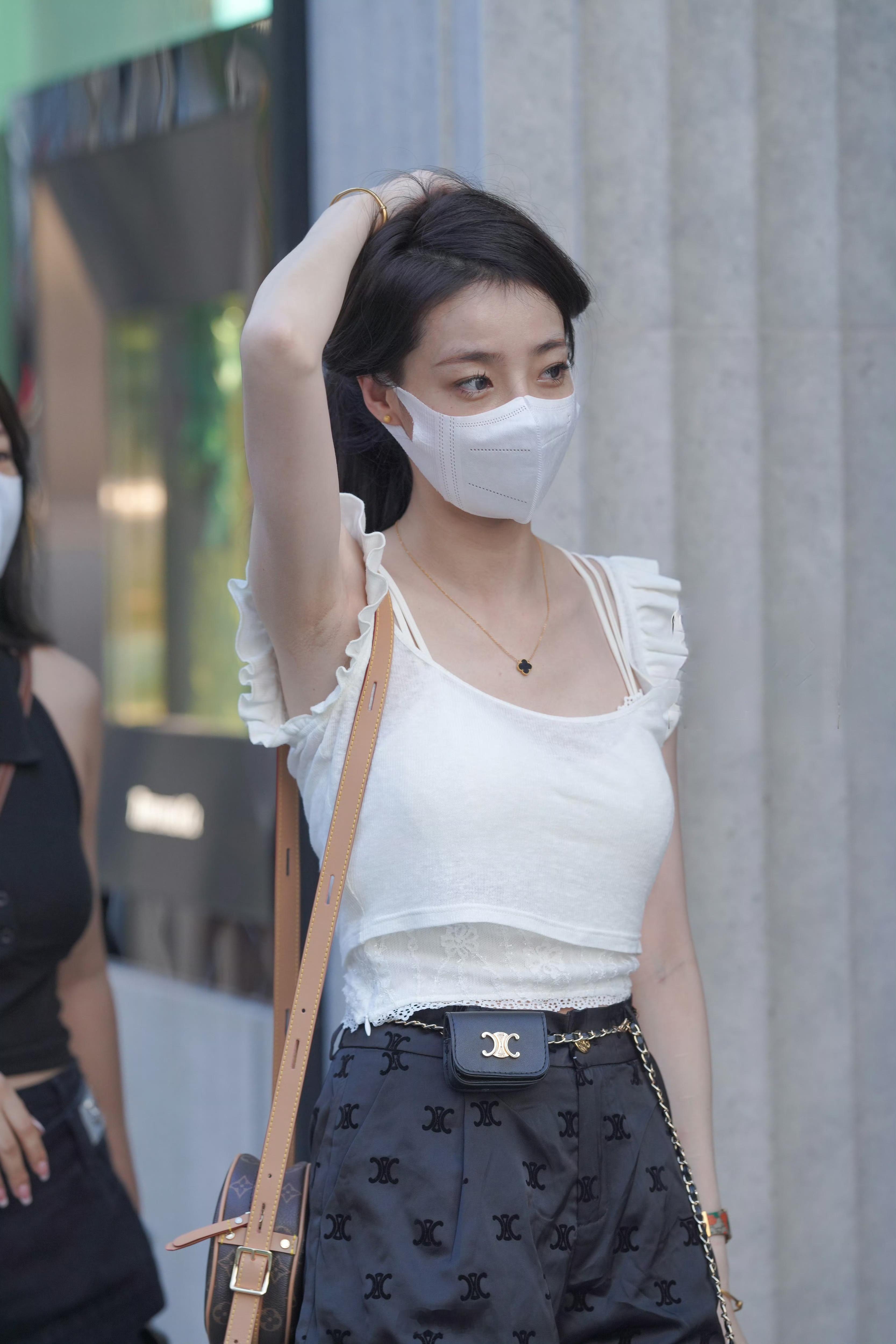 紫色上衣搭配蓝色牛仔裤简约又好看