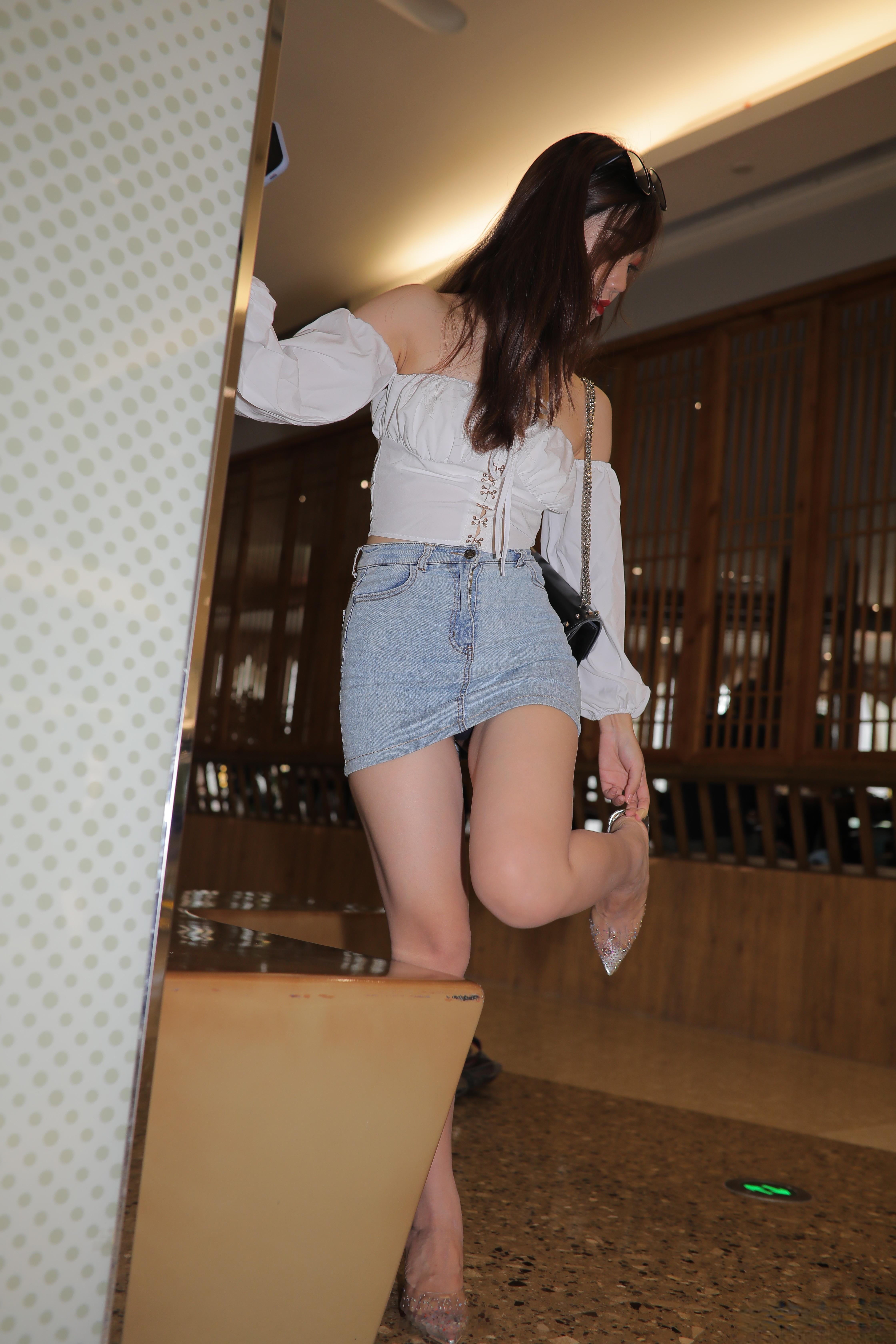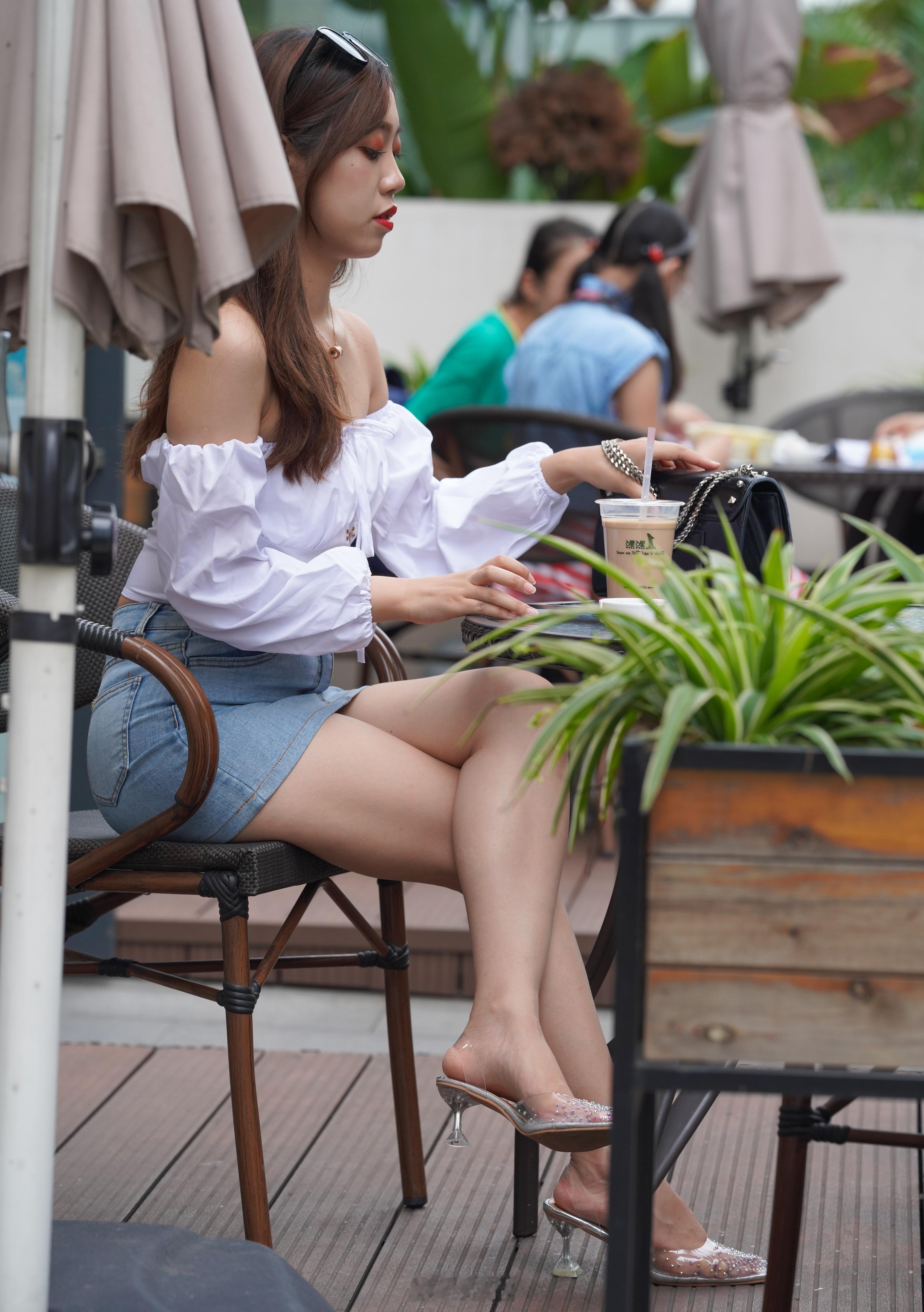 紫色上衣搭配蓝色牛仔裤简约又好看