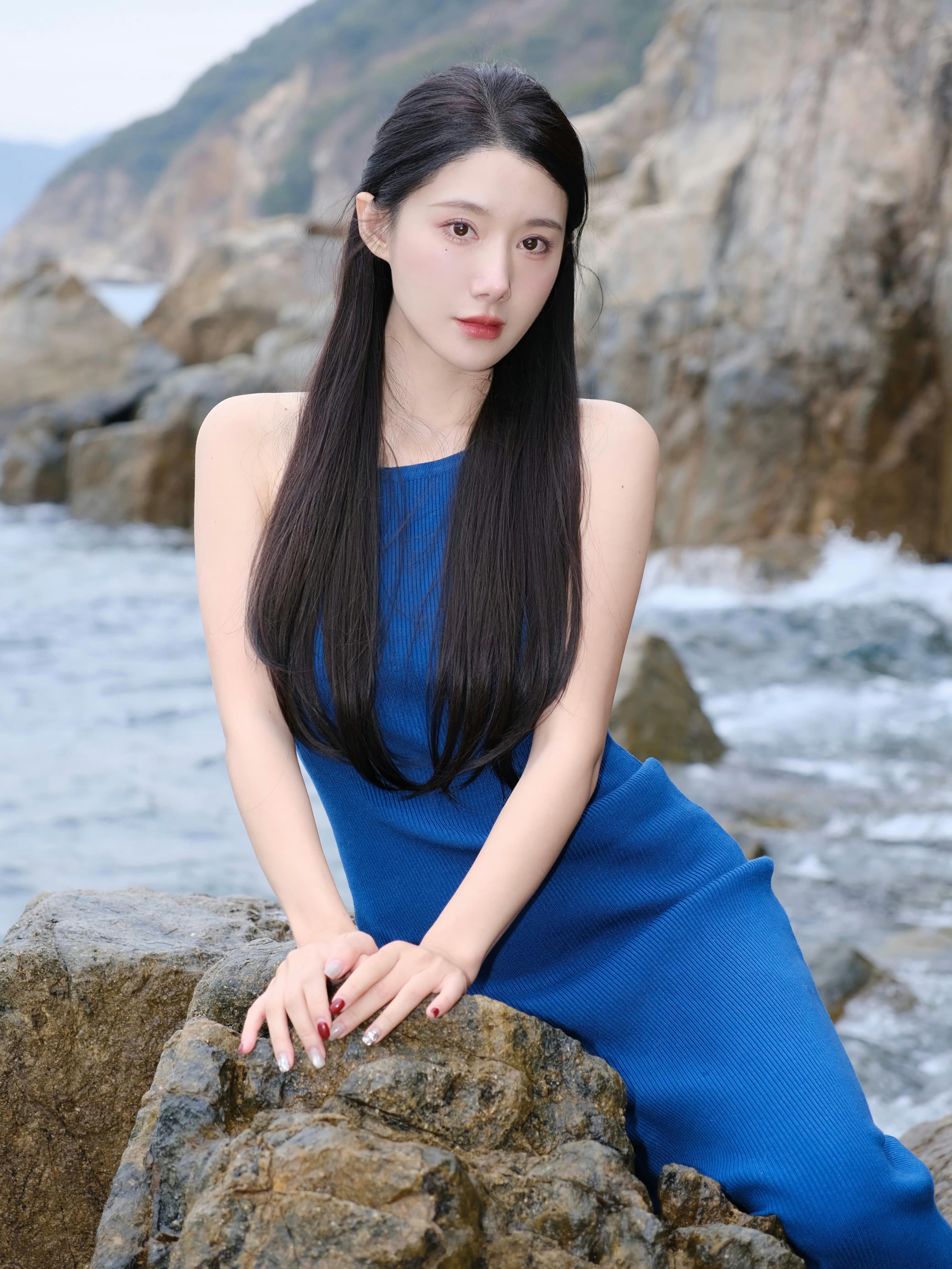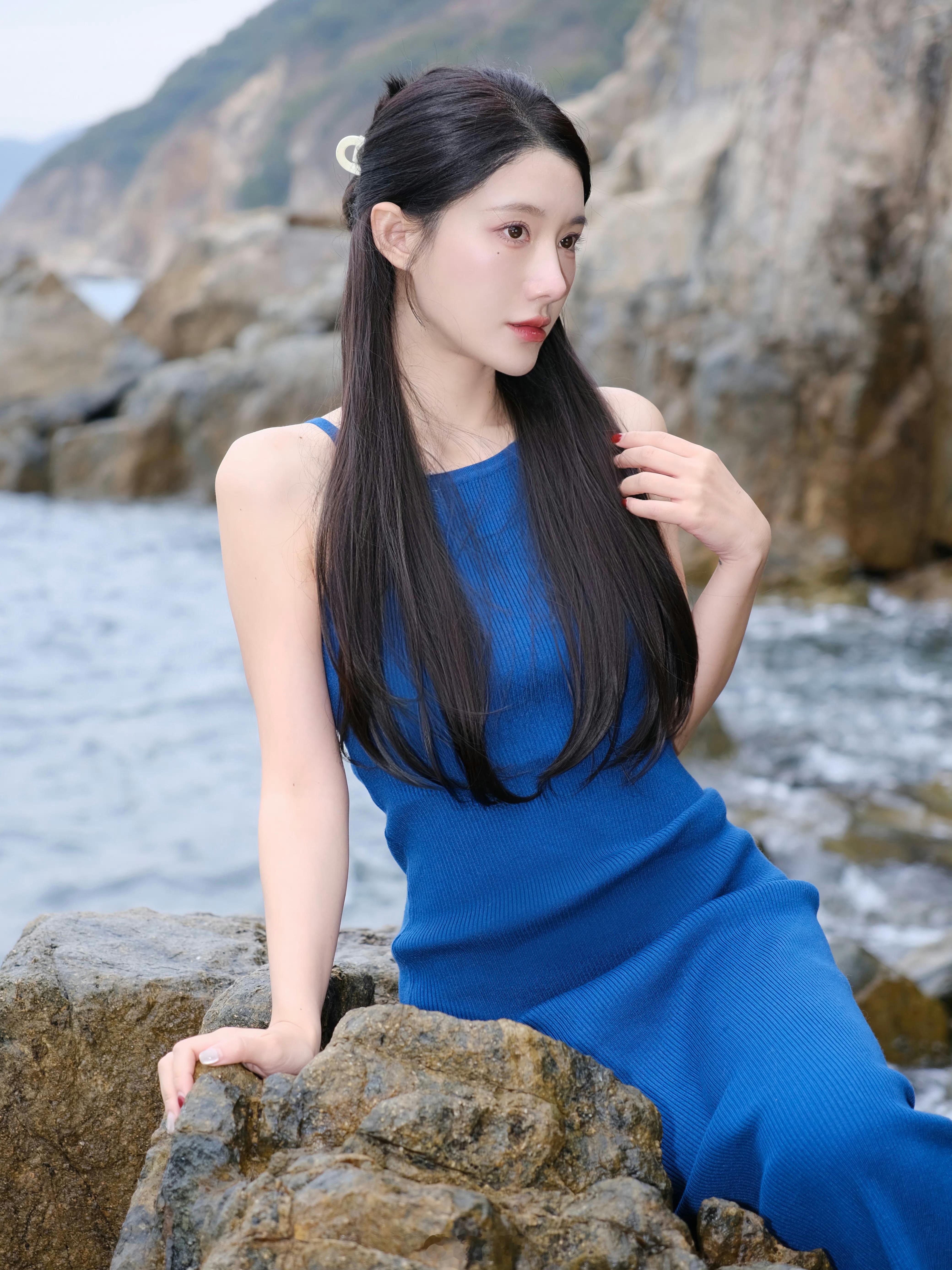 蓝色长裙的美