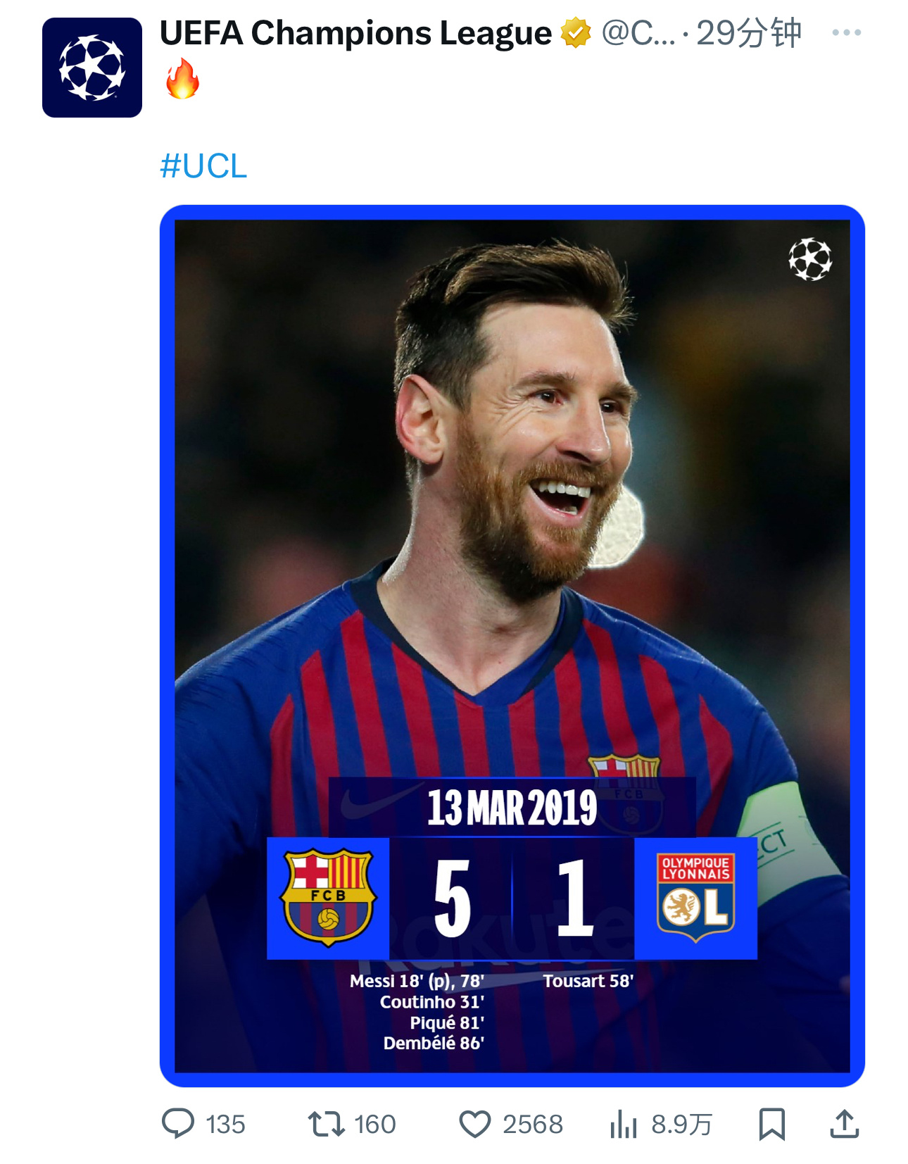 欧冠官推:🔥#梅西[超话]##欧冠#