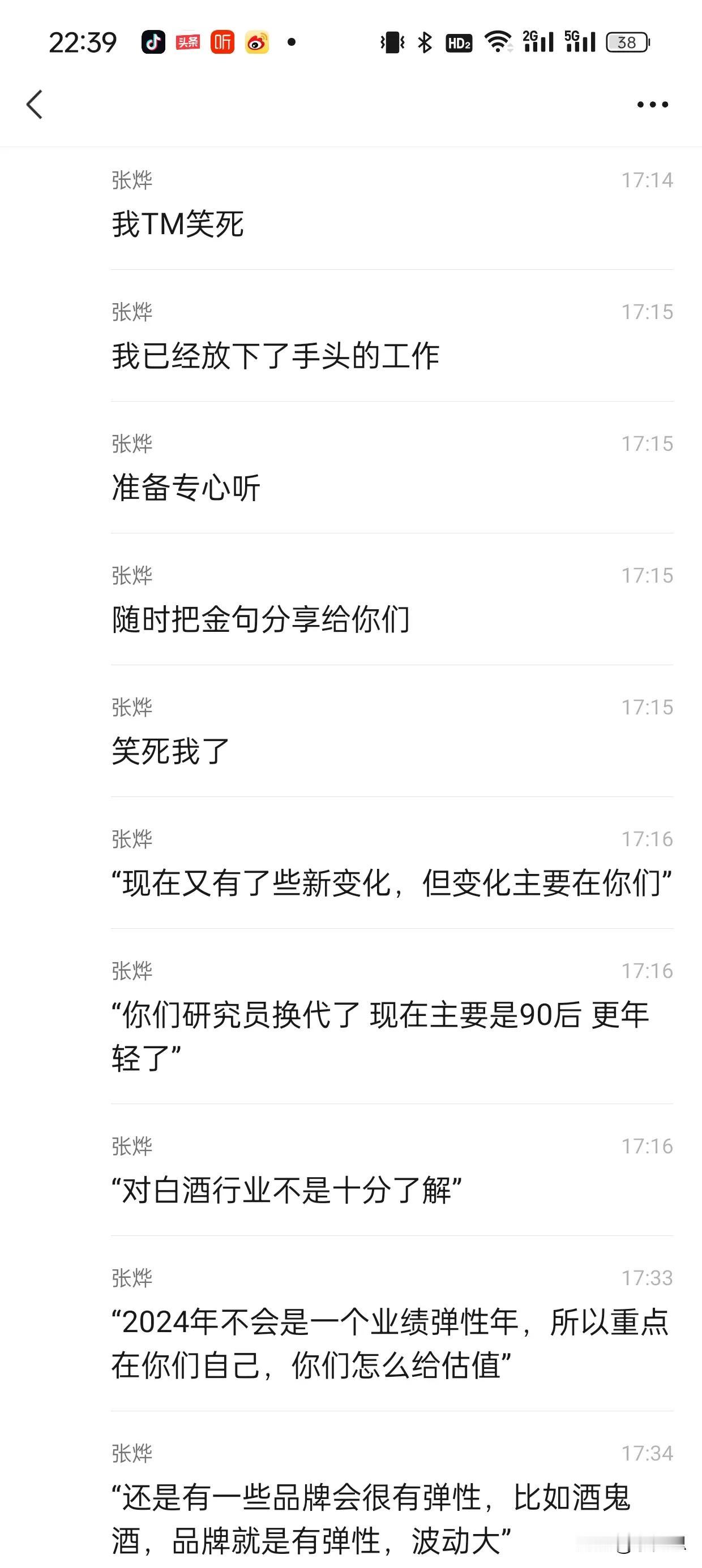 真是笑死了,圈里面对于白酒的调研。 对于白酒的估值,跟白酒没关,主要跟换不换研究员有关。哈。。。卧槽,年纪轻轻,说得还挺对!!!