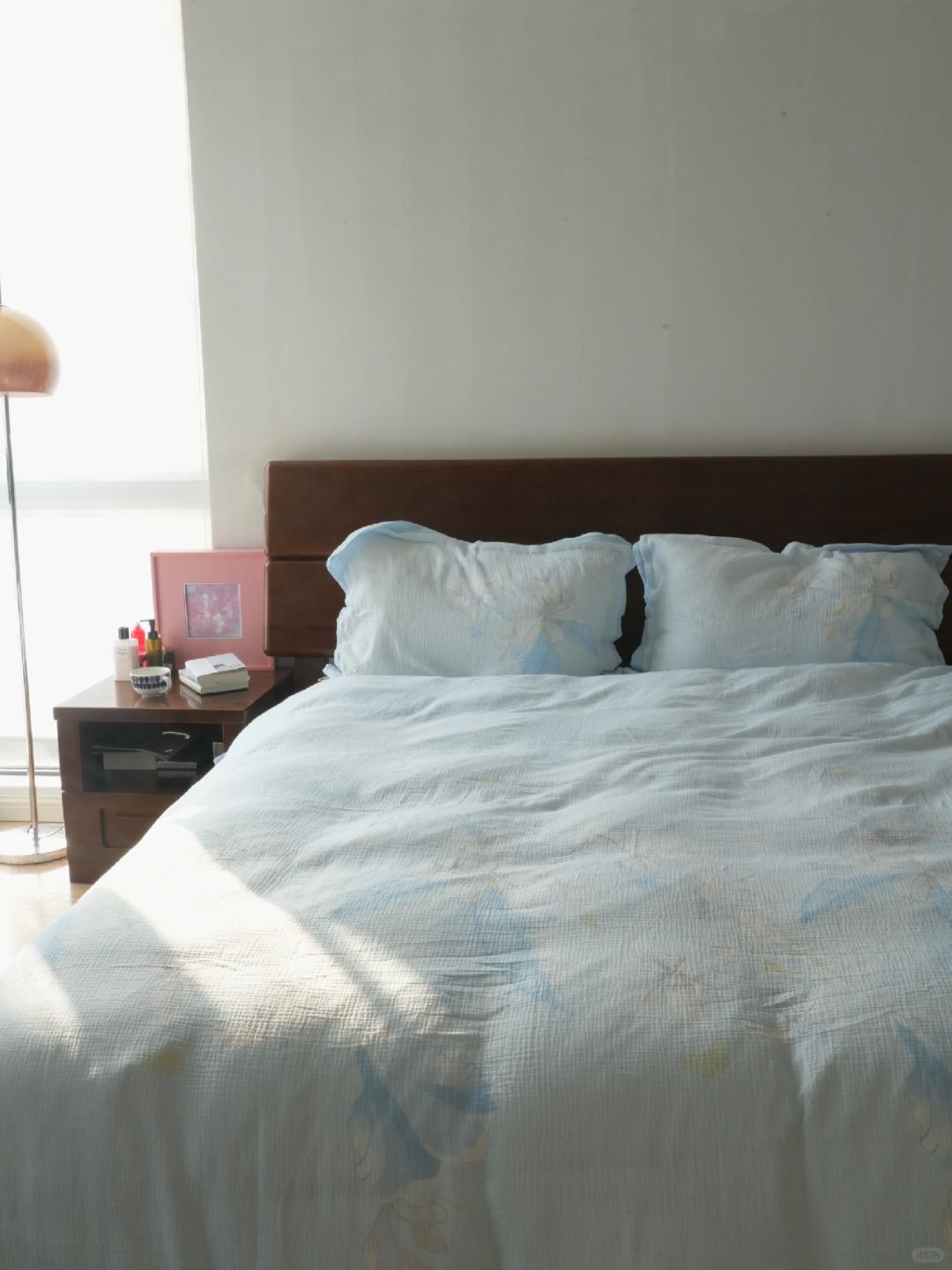 盖上厚厚的化纤被会非常闷热不透气,我只有做做床品的功课,来调整昼夜睡眠的稳定💤