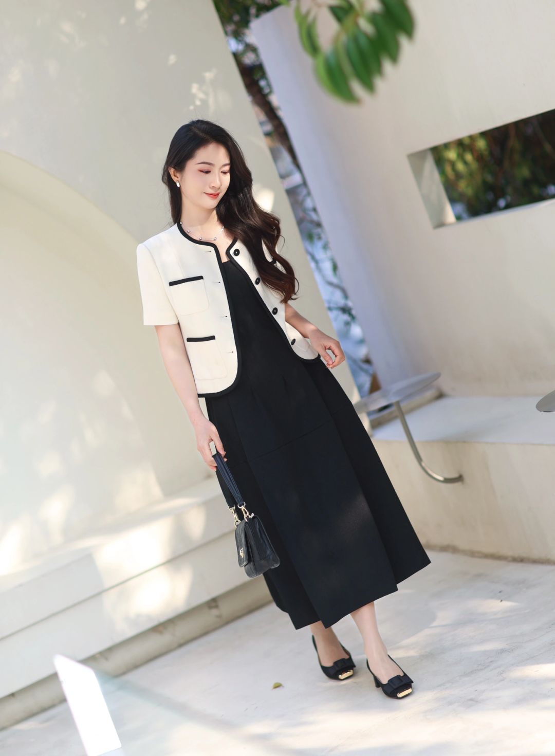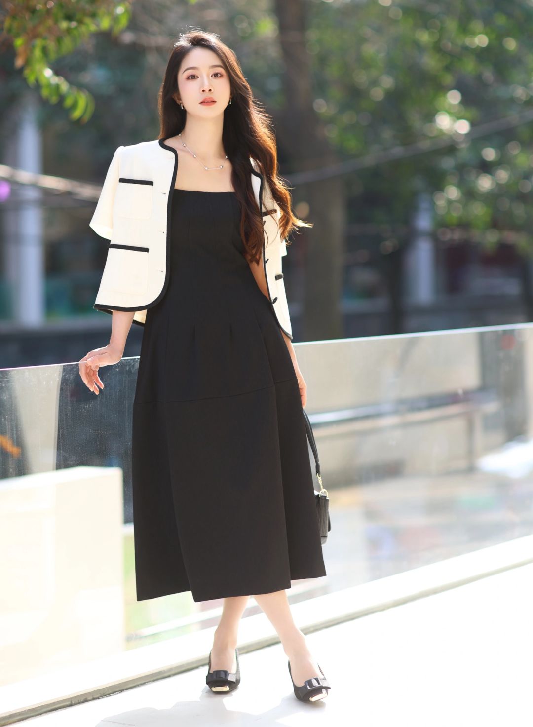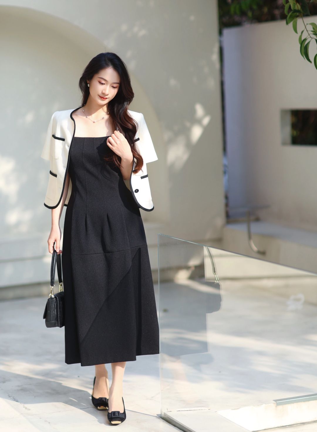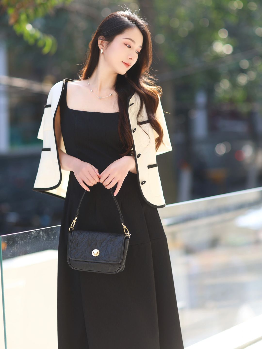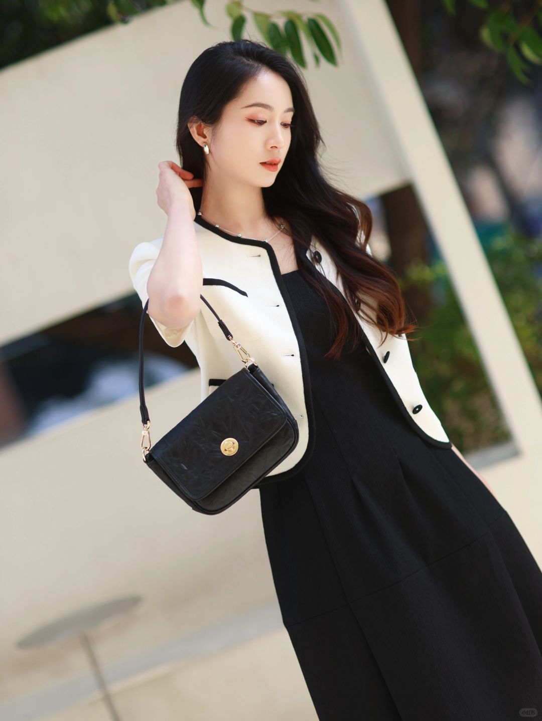气质穿搭通勤穿搭小香风初春穿搭早春穿搭 小黑裙 赫本风小黑裙 黑白配 小香外套