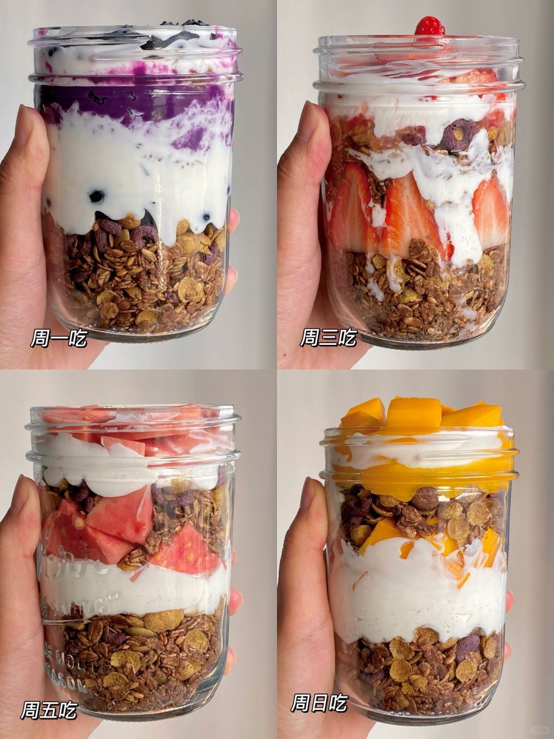 跟着超模学的希腊酸奶减肥法!低卡又好吃!! 超级适合在减脂期的姐妹拿来当早餐🥣 燕麦饱腹感真的强👍搭配没啥热量的水果和酸奶口感真的超赞的!!清甜不腻,口感丰富! 糯叽叽,冰淇淋的口感,吃一次就爱上! 晚上做好放冰箱,第二天早上起来就可以吃了! 🫐紫薯蓝莓燕麦杯 紫薯➕蓝莓➕酸奶➕紫薯泥➕燕麦 🍓草莓酸奶燕麦杯 草莓➕酸奶➕燕麦 🍐芭乐酸奶燕麦杯 芭乐➕酸奶➕燕麦 🥭芒果酸奶燕麦杯 芒果➕酸奶➕燕麦➕芒果泥 低卡又饱腹!减脂期的姐妹都试试!! 简直就是我减脂期嘴馋的神仙美食!一口下去超满足的!