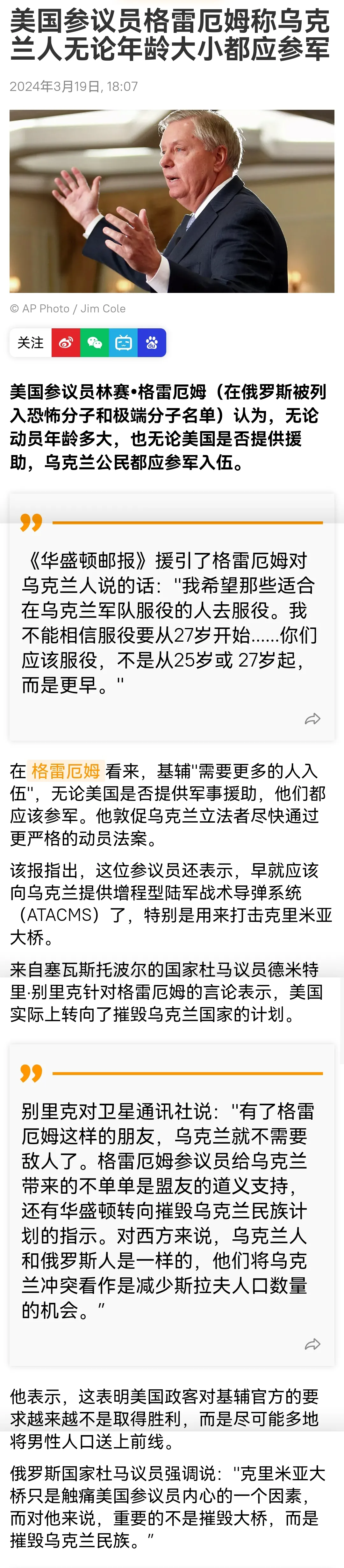 这是要将泽连斯基架在火炉上烤?最新消息:泽连斯基宣誓打了两年乌军总阵亡3.1万后,美国资深参议员格雷厄姆对外表示,无论动员年龄多大,也无论美国是否提供援助,乌克兰公民都应参军入伍。