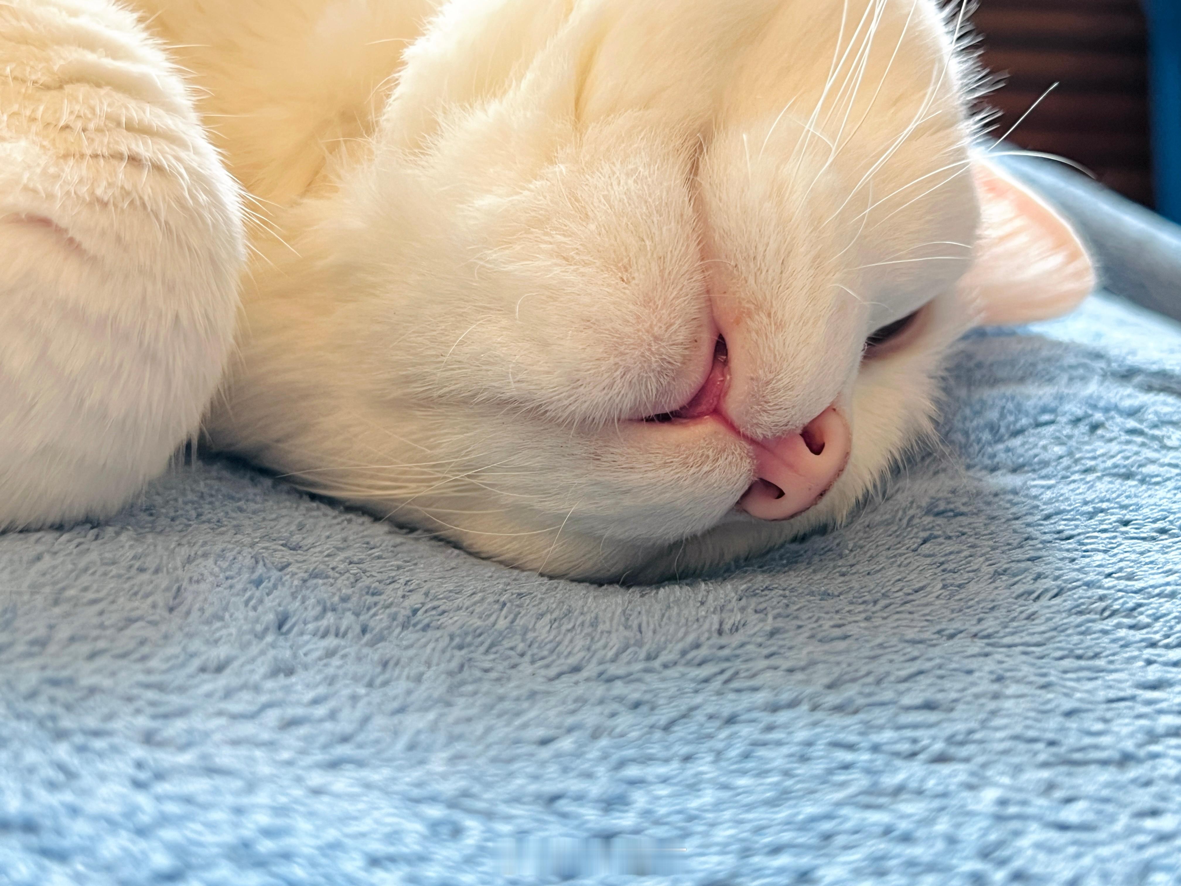 沙發上平放一顆抱枕+兩張毯毯+蝦味就可以讓老寶睡到翻過企~