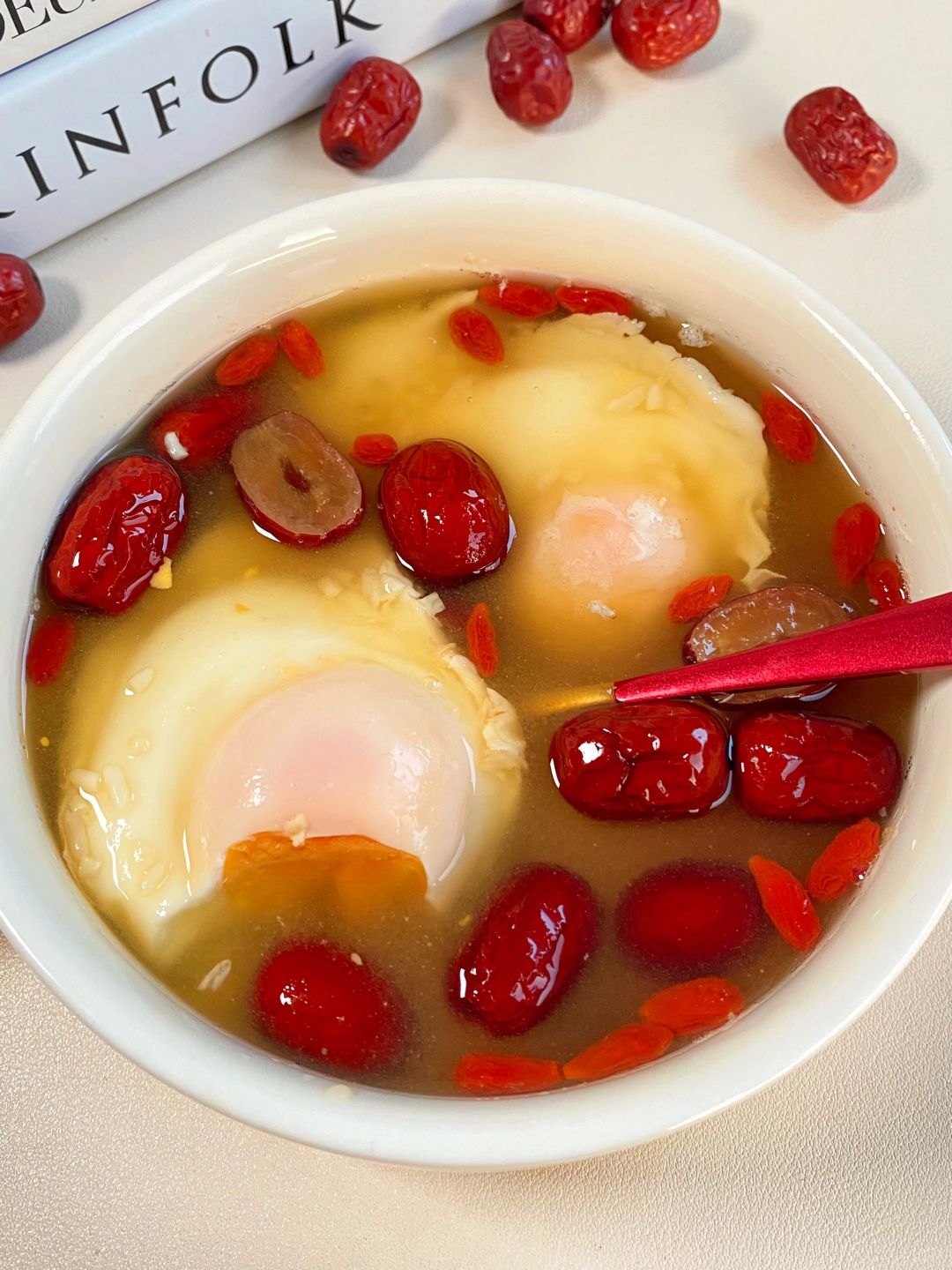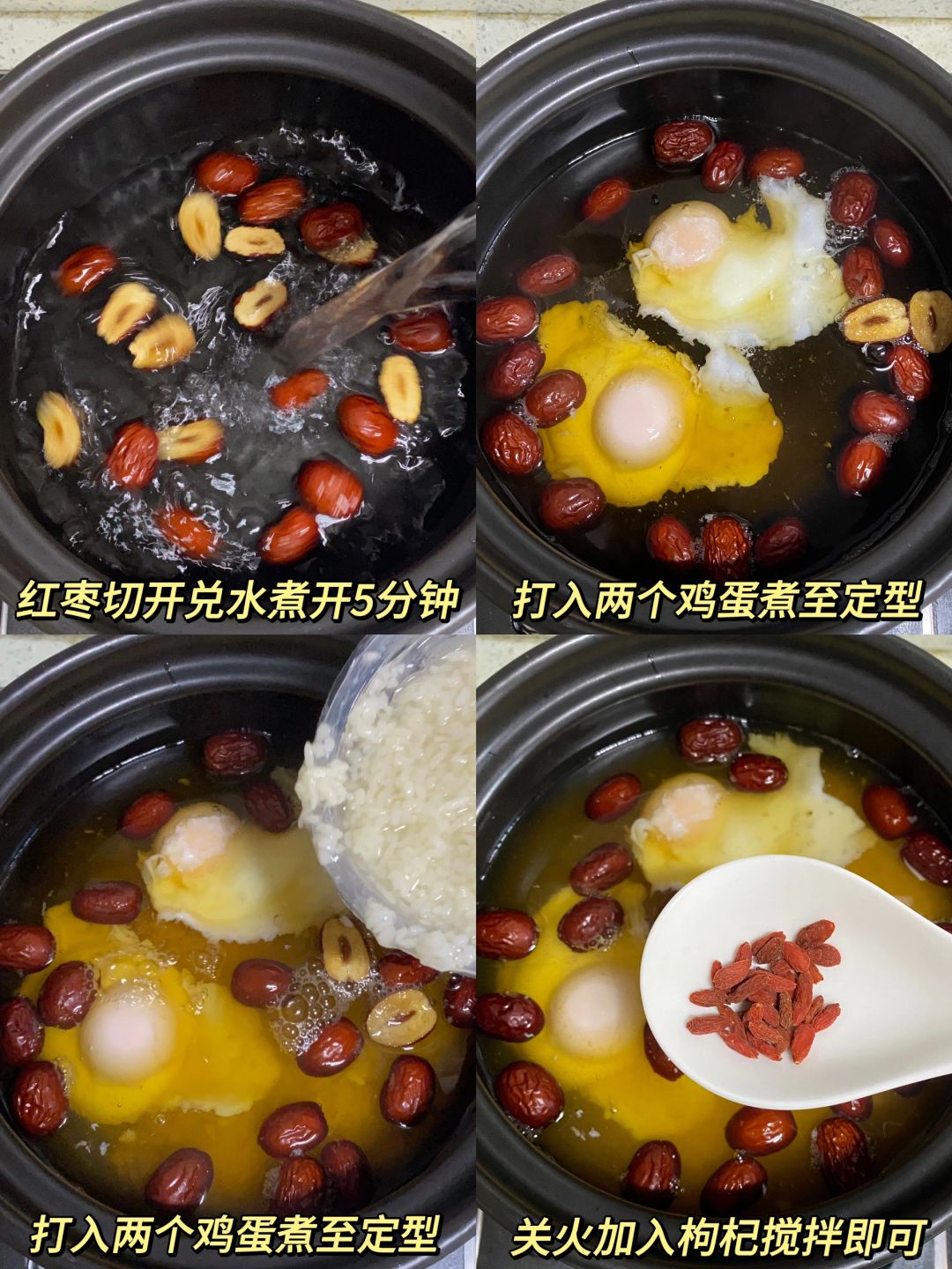 红糖酒酿鸡蛋!我妈喝了十年的配方!! 香甜香甜的~女孩子贼营养~贼友好~ 尤其是喜欢熬夜、秋冬天手🦶冰冷的姐妹,一定要煮起来!!一碗下肚暖乎乎的~ 生理期走后就馋这一口,真的好好吃!! 📝鸡蛋、红枣、枸杞、红糖、酒酿 🥣做法:红枣切开去核,兑水煮开5分钟,小火打入2个鸡蛋煮至定型,倒入酒酿煮开2分钟,关火放入枸杞即可 经常喝小脸🧏🏻♀️红润润哒~热乎乎的~ 秋冬天泰适合喝这一碗啦!!