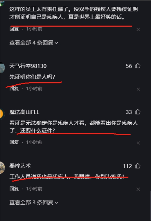 这样的场景让人深感荒谬。残疾证,本应是为了方便残疾人获得更多便利和关怀,但却成了剥夺他们基本权益的工具。一纸证书,竟然可以决定一个人是否能够正常乘坐交通工具,这背后的逻辑让人匪夷所思。