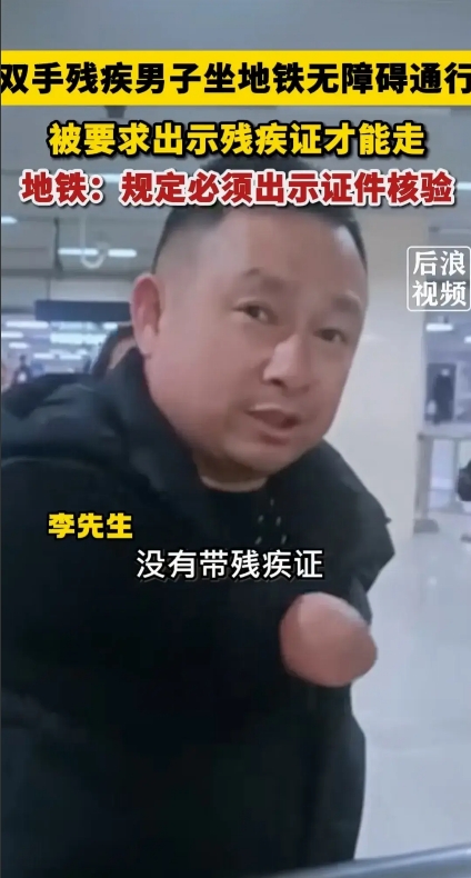 闹大了!地铁回应要无臂男子出示残疾证证明是残疾人,评论炸锅了