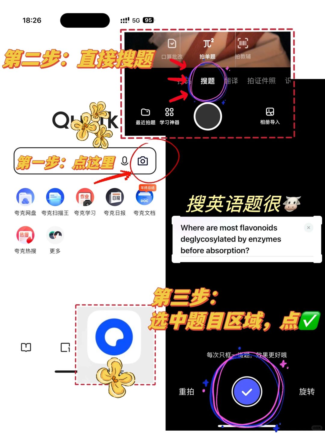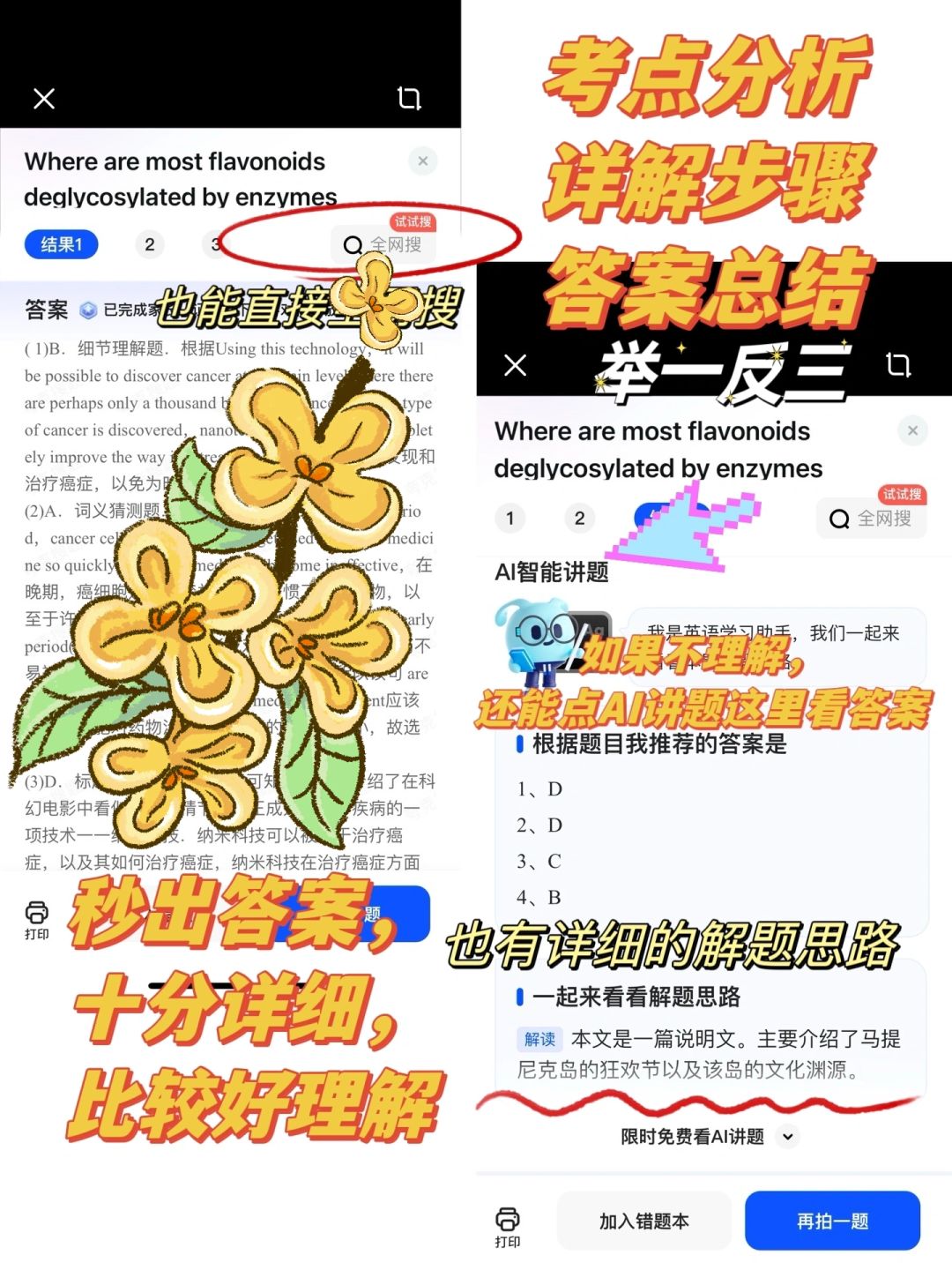 之前都是某字典先翻译成中文再搜,麻烦死了。夸克搜题不仅可以搜题,还能AI解题,有专门的AI口语话答案,简单易懂,比别的搜题都细致很多,直接⏬a屁屁就可以🔍。