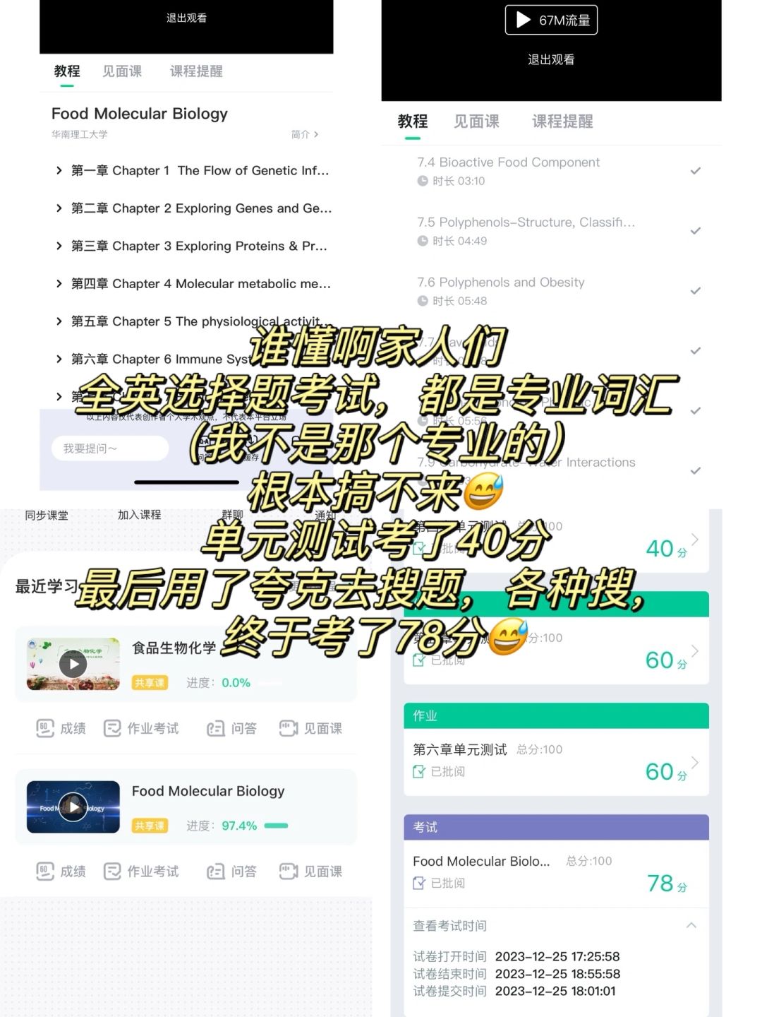 然后就是期末考试,救大命啊真的…是谁啊天天做实验还要搞各种考试😅,考试还是全英文的,我看好多人都不及格,最后老师又让写短文交上去,补救一下,[捂脸R]还好是线上考试,线下我直接完蛋,全是非我研究方向的词汇。