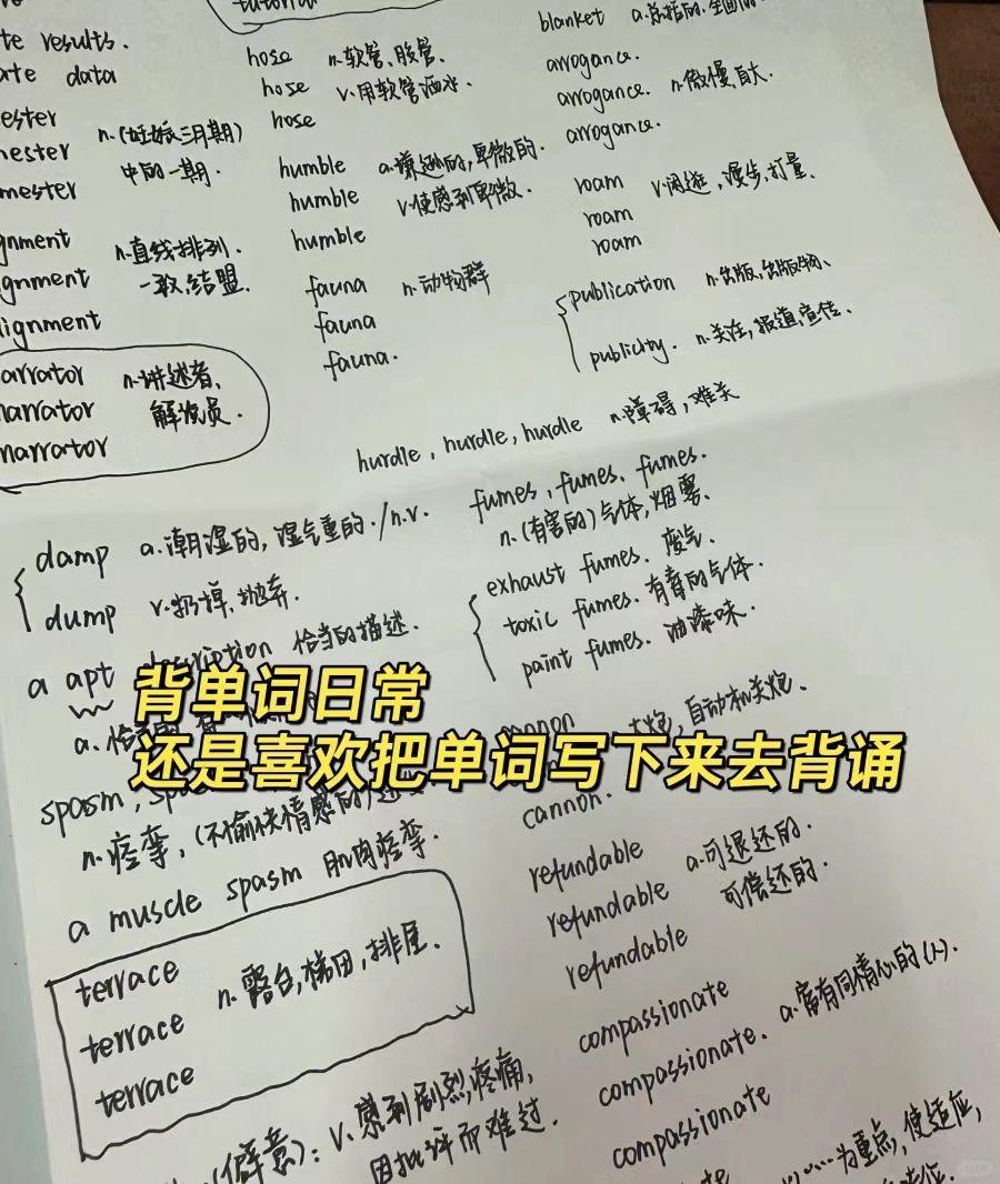 英语日常:还是保持单词背诵[耶R]想在博士毕业之前把雅思考下来,其实考试是次要的,只是想找个名头让自己不要停止学英语。精听英语听力,背单词我还是老方法,yyds🌚,雅思词汇目前我已经刷了一遍了,之后就是查漏补缺啦。