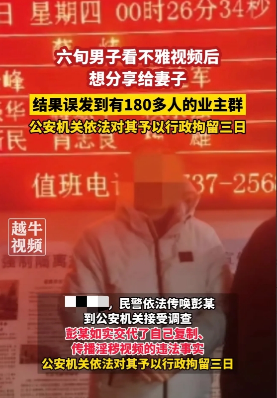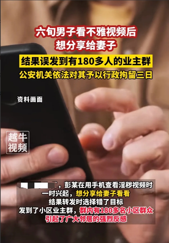 1、如何看待老彭误将不雅视频转到180人的业主群的行为?