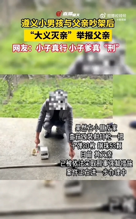 “大义灭亲?”贵州遵义,一小男孩与父亲因生活琐事吵架后,一气之下,打电话报警声称其父亲在家里藏有一把枪。虽然是小男孩报的警且被举报的还是其父亲,很难让人相信。但涉枪线索民警不敢掉以轻心,并决定上门核实。结果民警真的在男孩家中找到一把枪。目前,男孩父亲已被警方刑事拘留。
