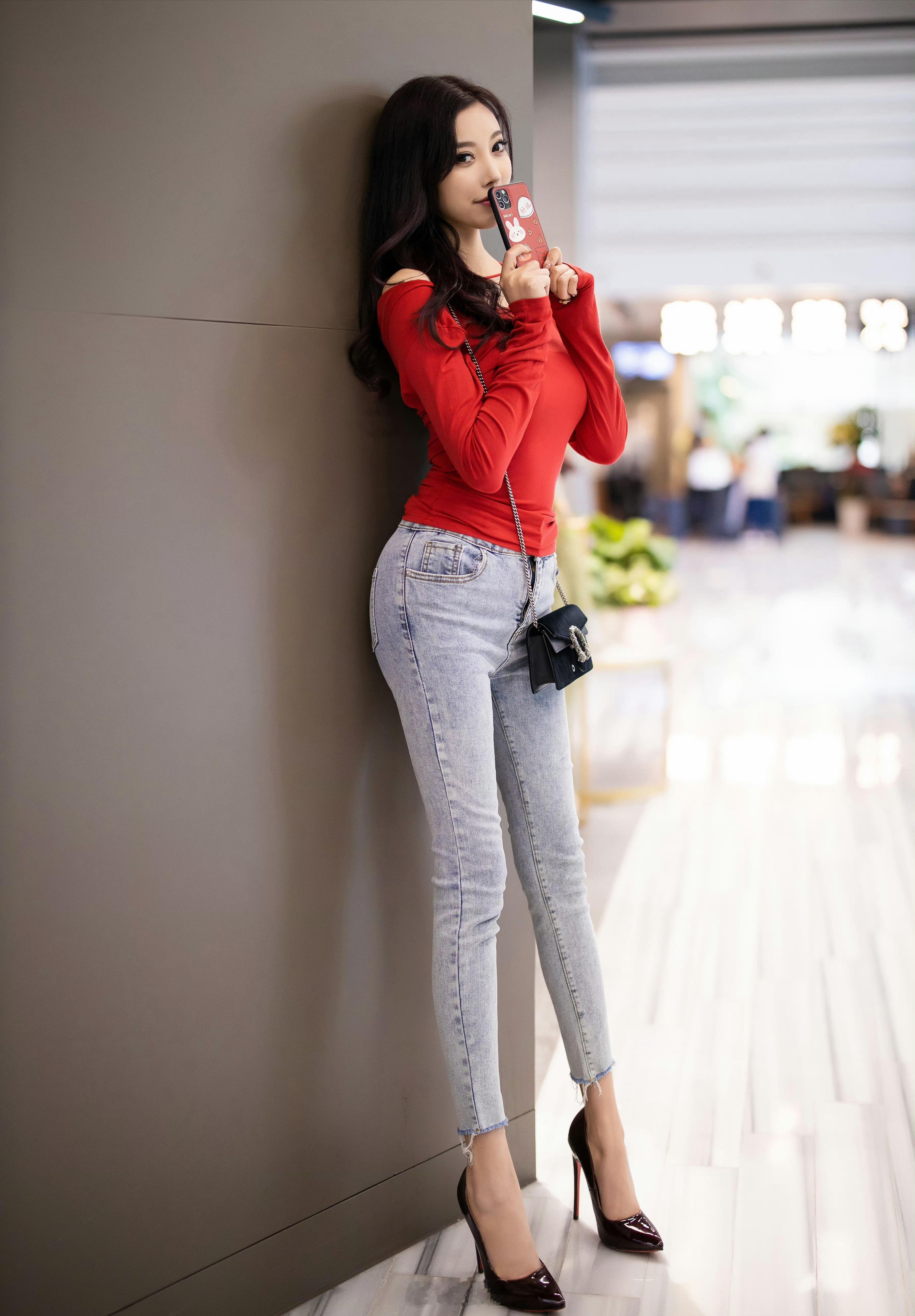 小姐姐的手机壳和上衣颜色很搭呀