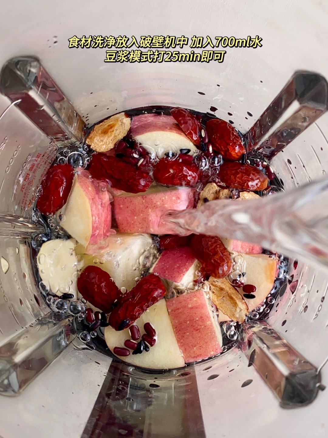 墙裂推荐这个黑米红豆苹果豆浆!! 真的香甜好喝!滋补水润~对女孩子不要太友好! 红豆养汽🩸,自带腮红!苹果富含膳食纤维,帮助💩秘!黑米富含花青素,k老真不是吹的! 每一个食材都对皮肤很友好哦,养颜又⬇️秤! 📝食材:黑米30g、红豆30g、红枣6颗、苹果半个 ✔️做法:食材洗净倒入破壁机,加700ml水,按豆浆模式即可 这个苹果豆浆不用加糖就很好喝!有点像血糯米奶茶的味道,我连着喝了好几天!建议一周喝3-5次,化妆品都省了!!