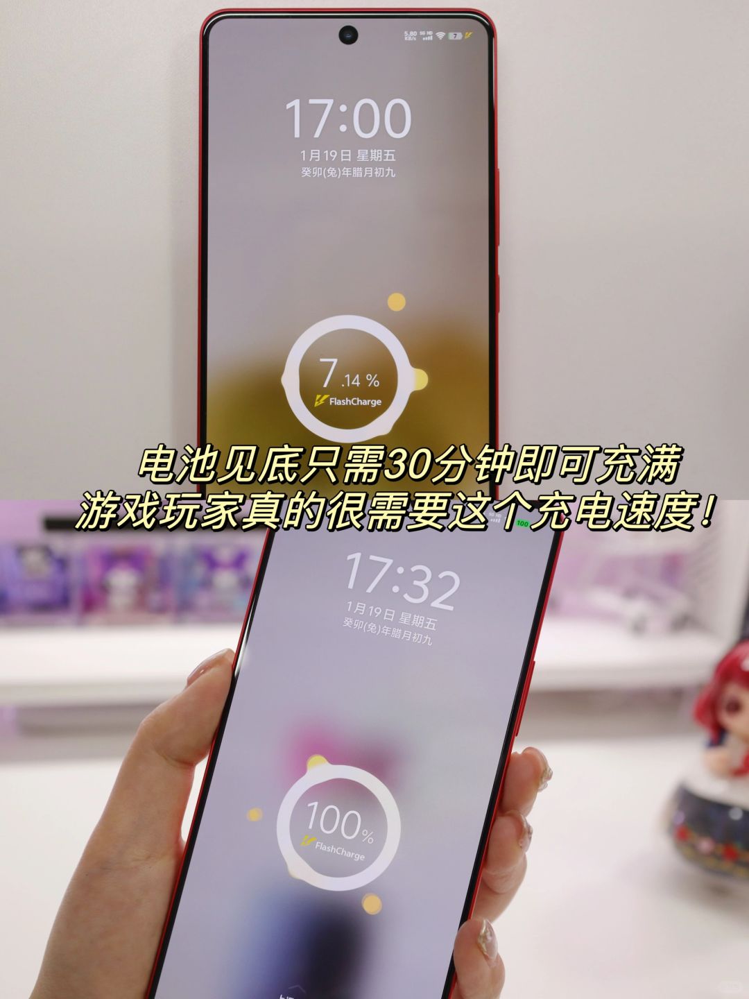 🔋玩1小时耗电17%,电池见底的情况下,用配置的120w闪充半小时就能给手机续满航